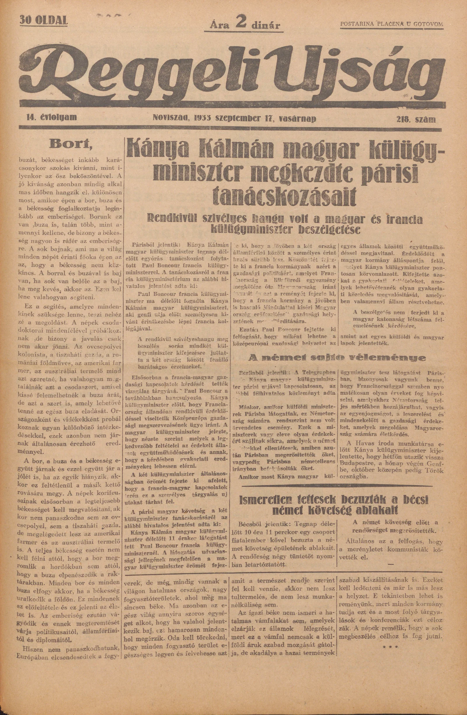Reggeli Újság, 14. évf. 1933. szeptember 17. 218. sz.