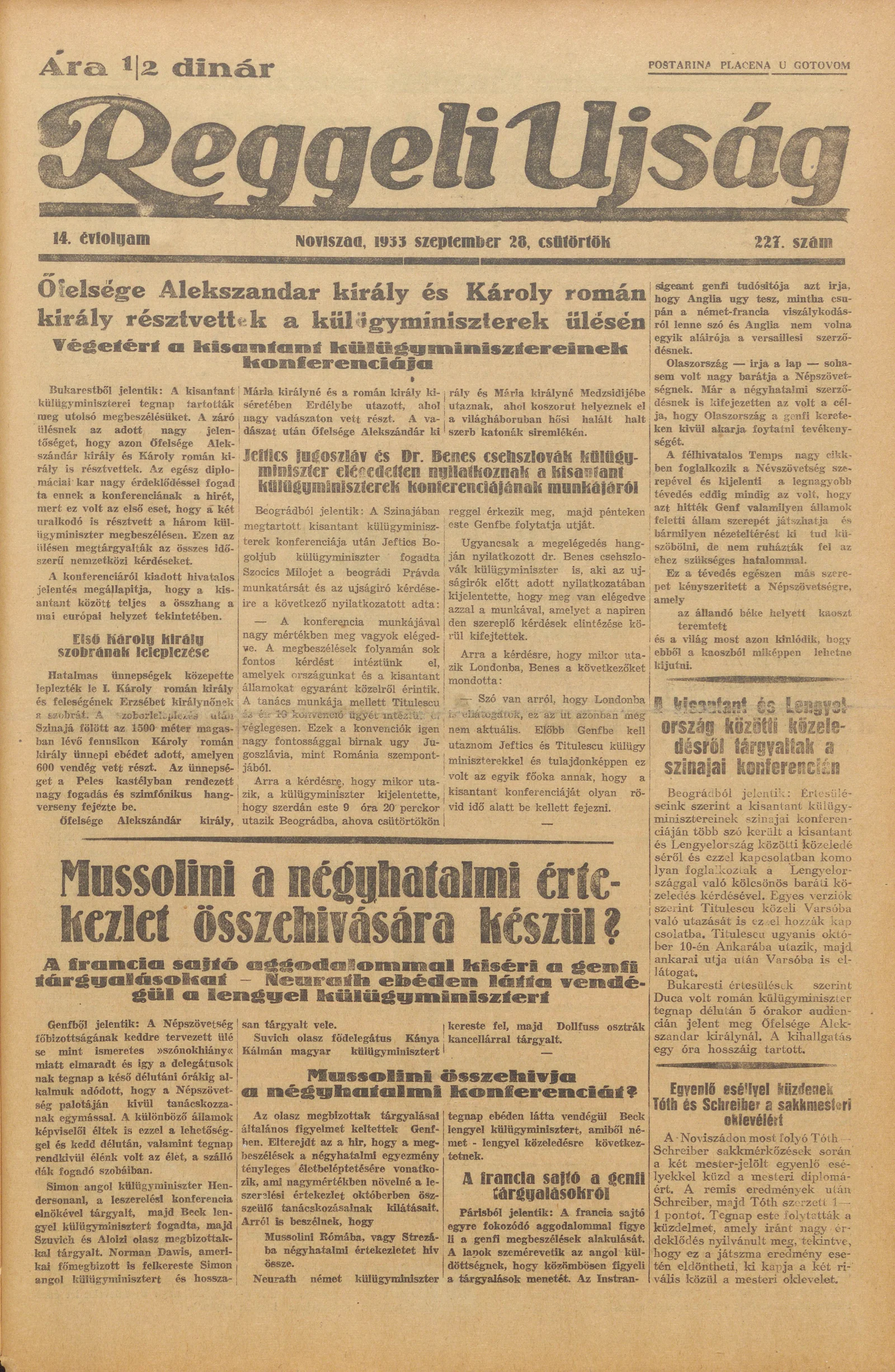 Reggeli Újság, 14. évf. 1933. szeptember 28. 227. sz.