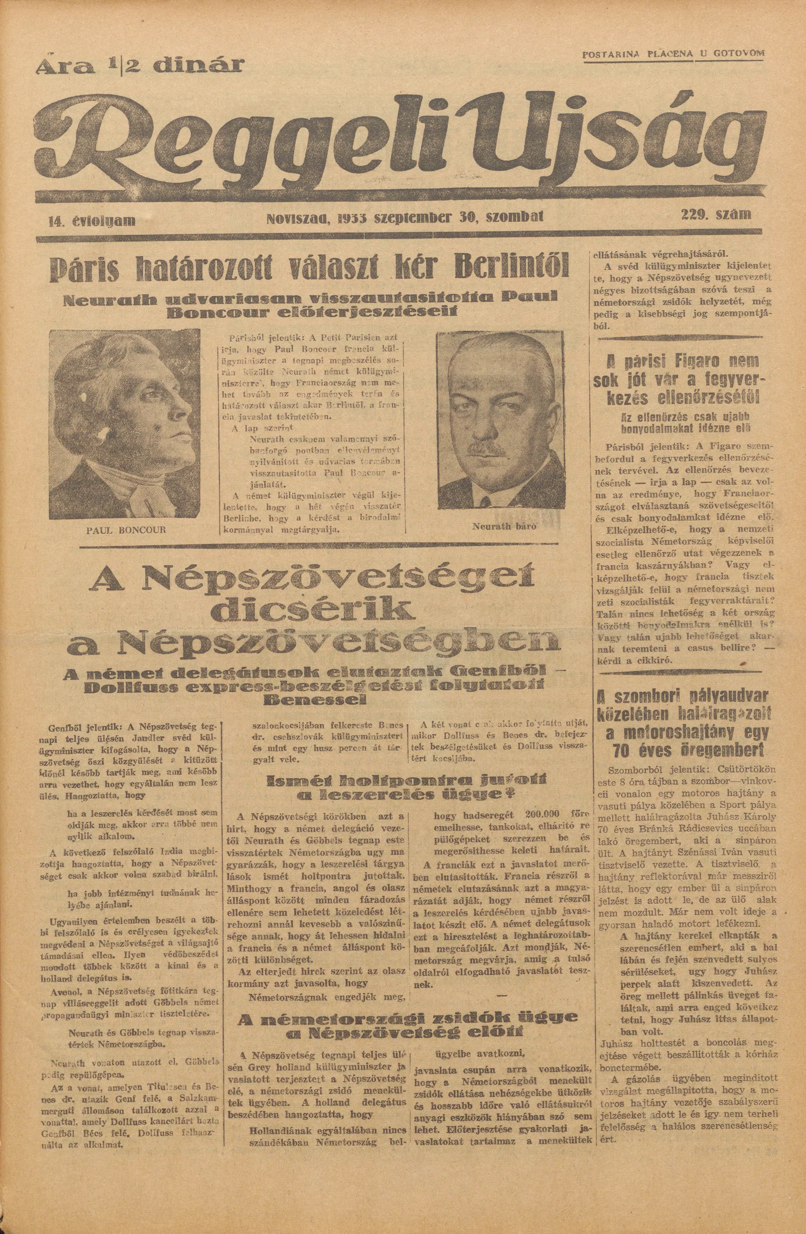 Reggeli Újság, 14. évf. 1933. szeptember 30. 229. sz.