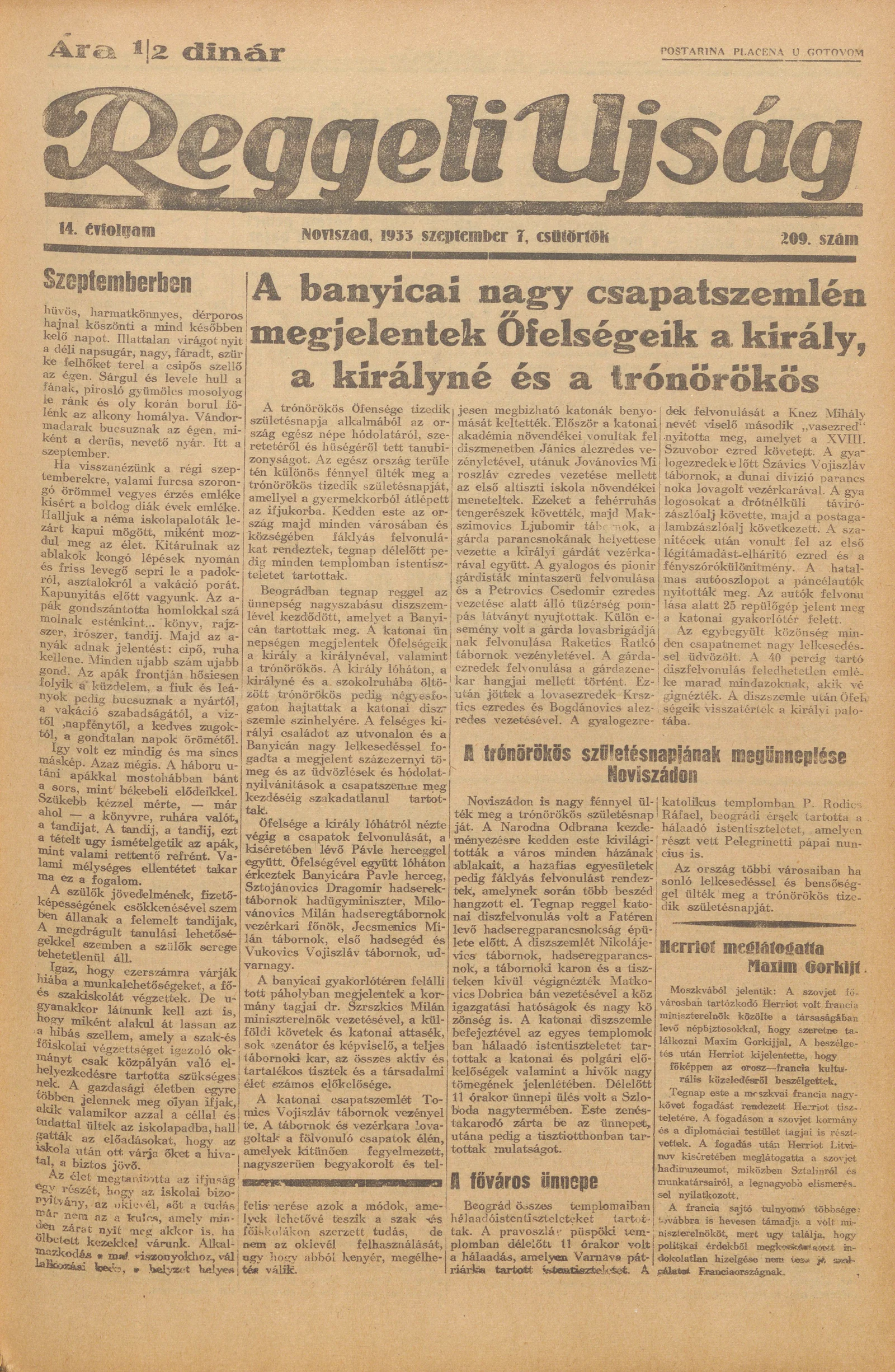 Reggeli Újság, 14. évf. 1933. szeptember 7. 209. sz.
