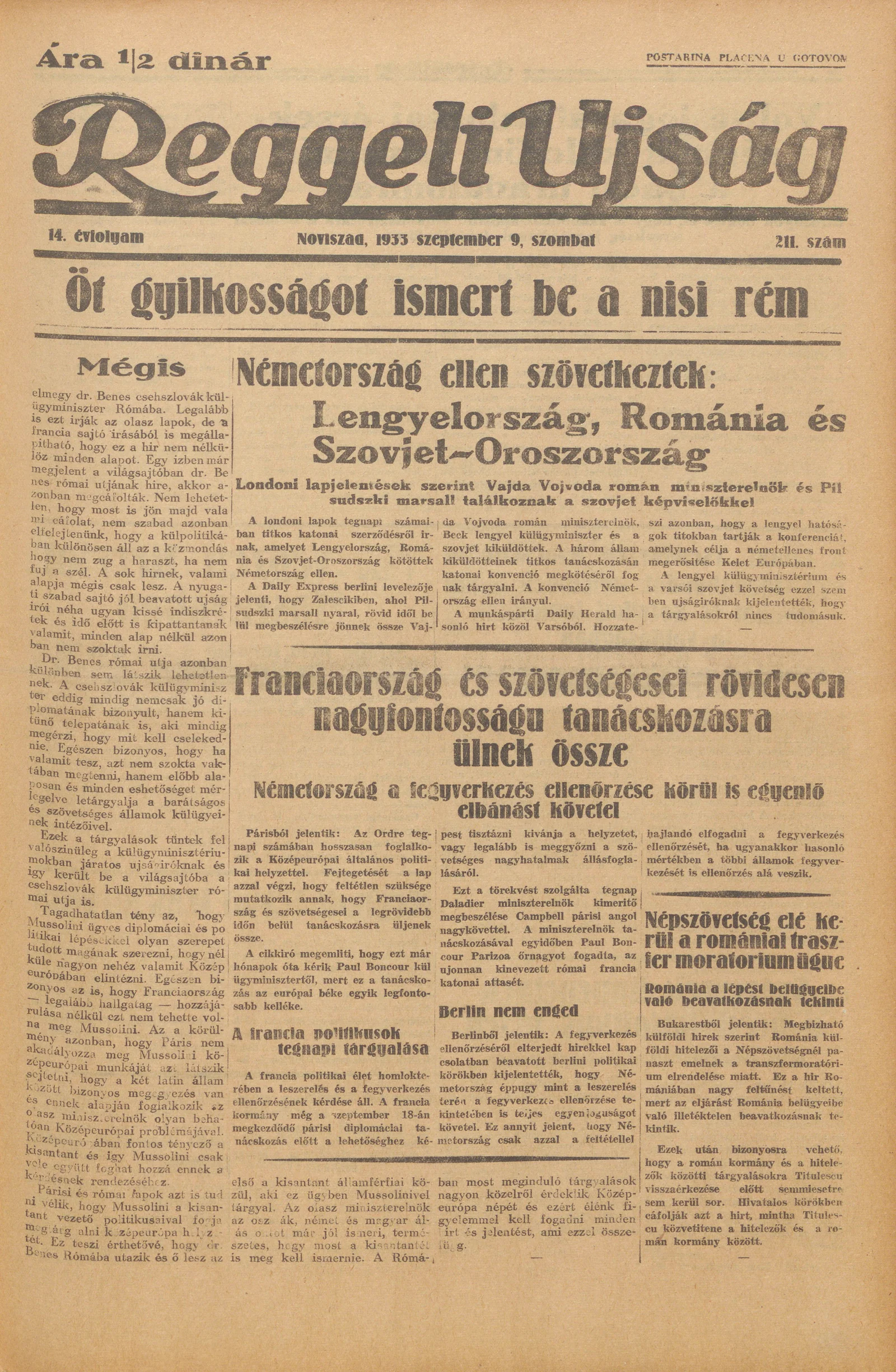 Reggeli Újság, 14. évf. 1933. szeptember 9. 211. sz.