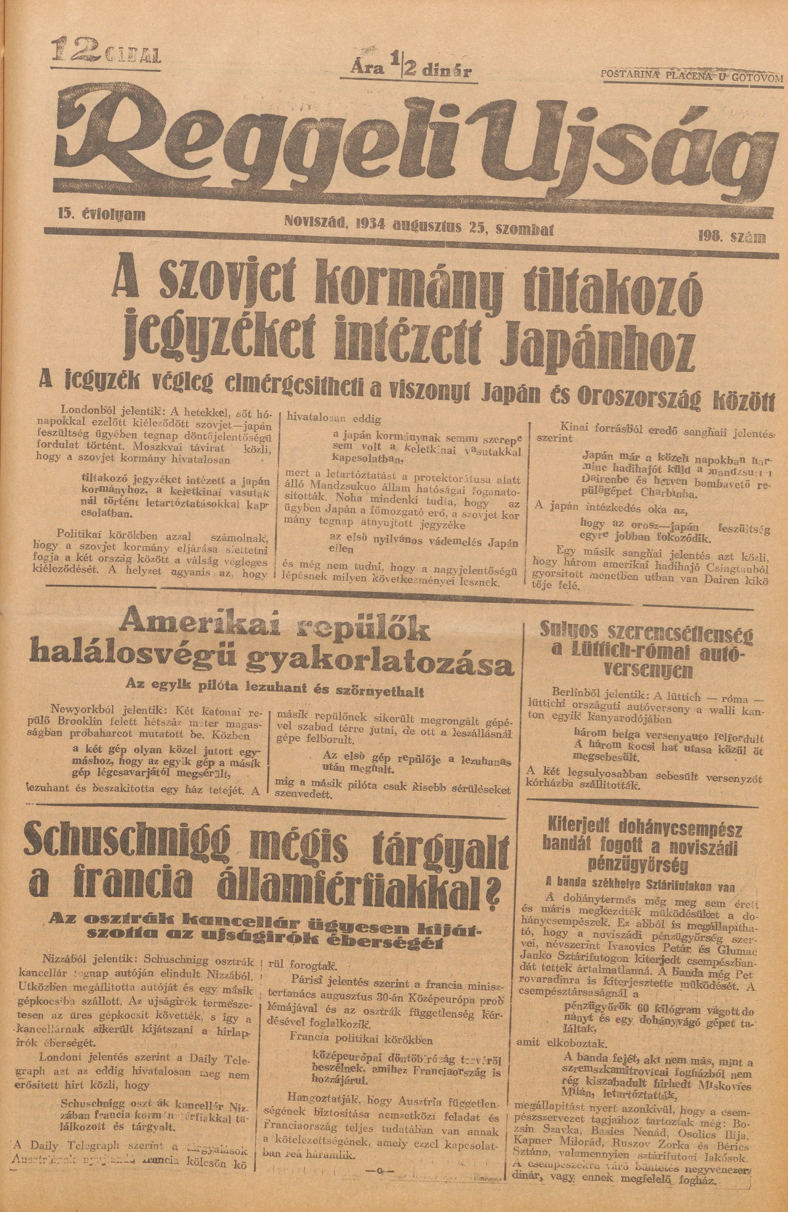 Reggeli Újság, 15. évf. 1934. augusztus 25. 198. sz.