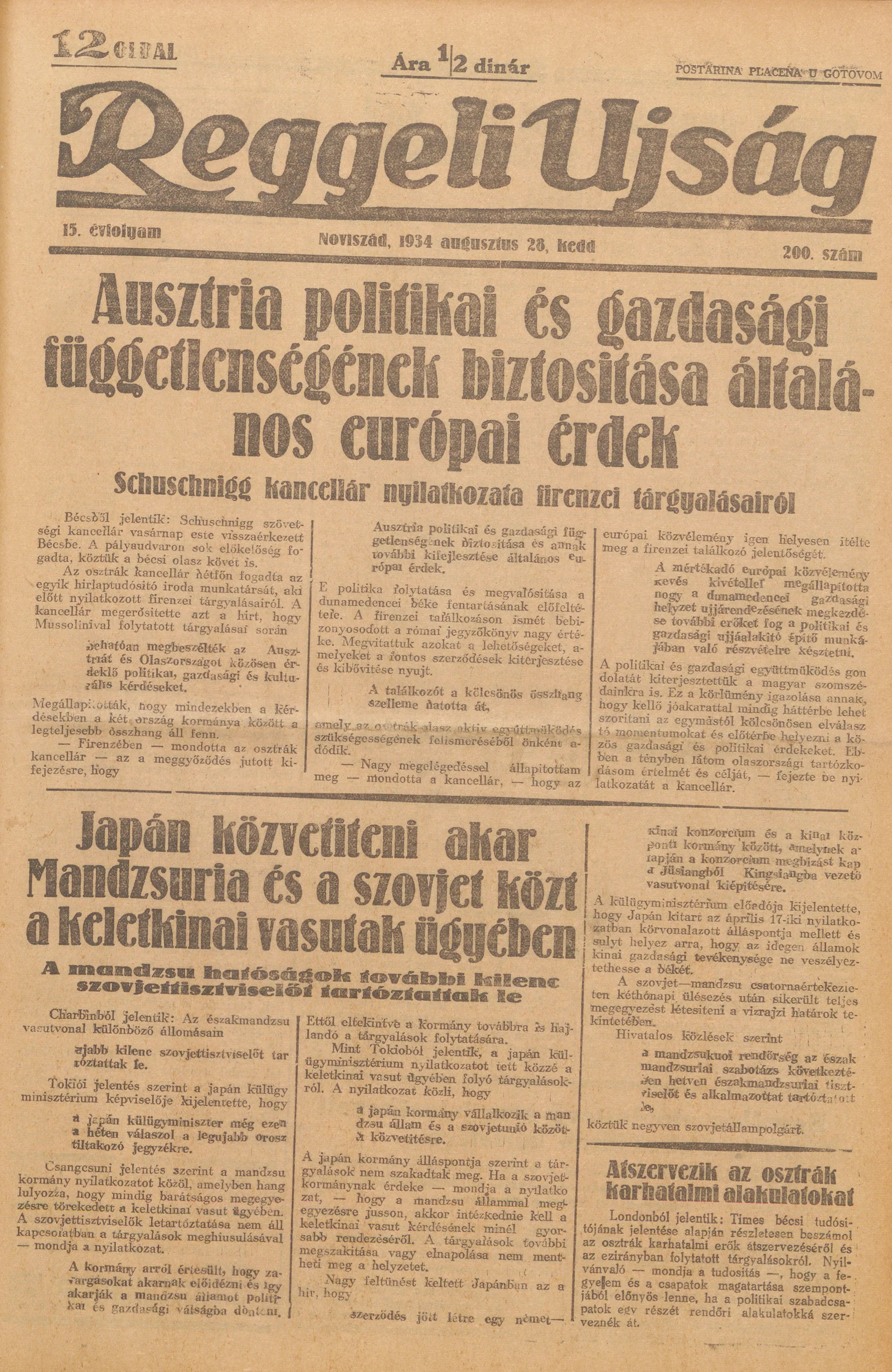 Reggeli Újság, 15. évf. 1934. augusztus 28. 200. sz.