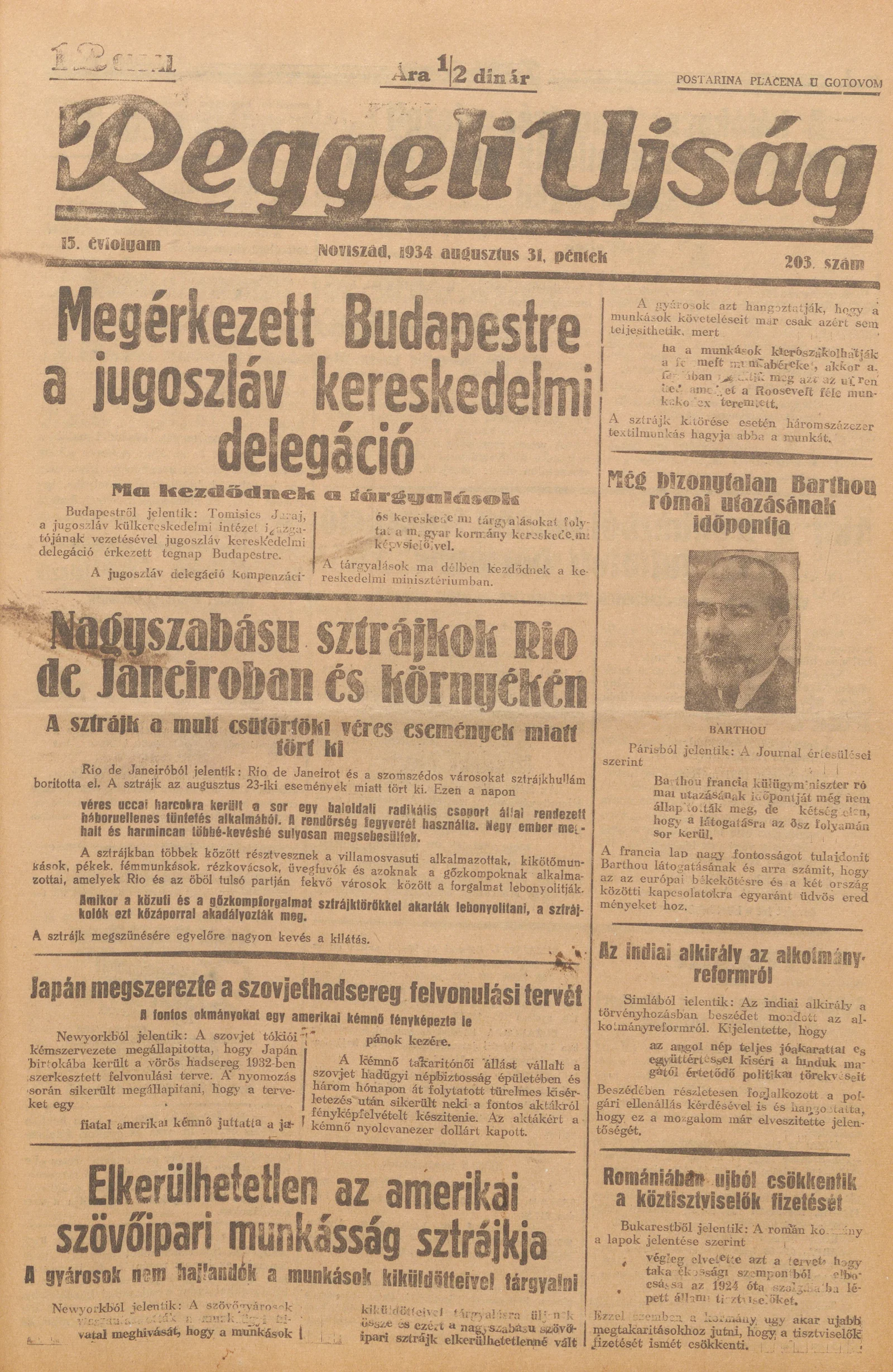 Reggeli Újság, 15. évf. 1934. augusztus 31. 203. sz.