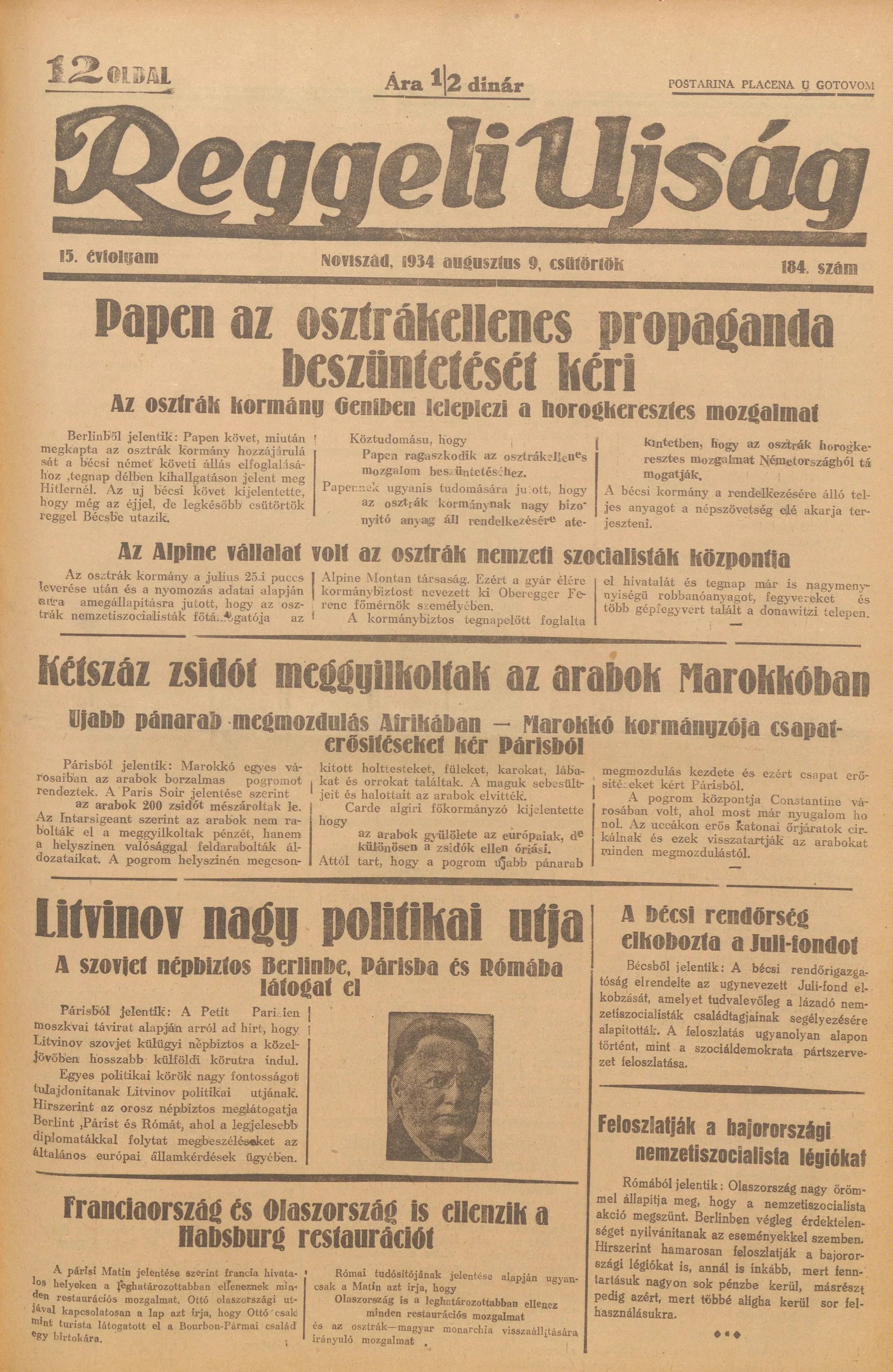 Reggeli Újság, 15. évf. 1934. augusztus 9. 184. sz.