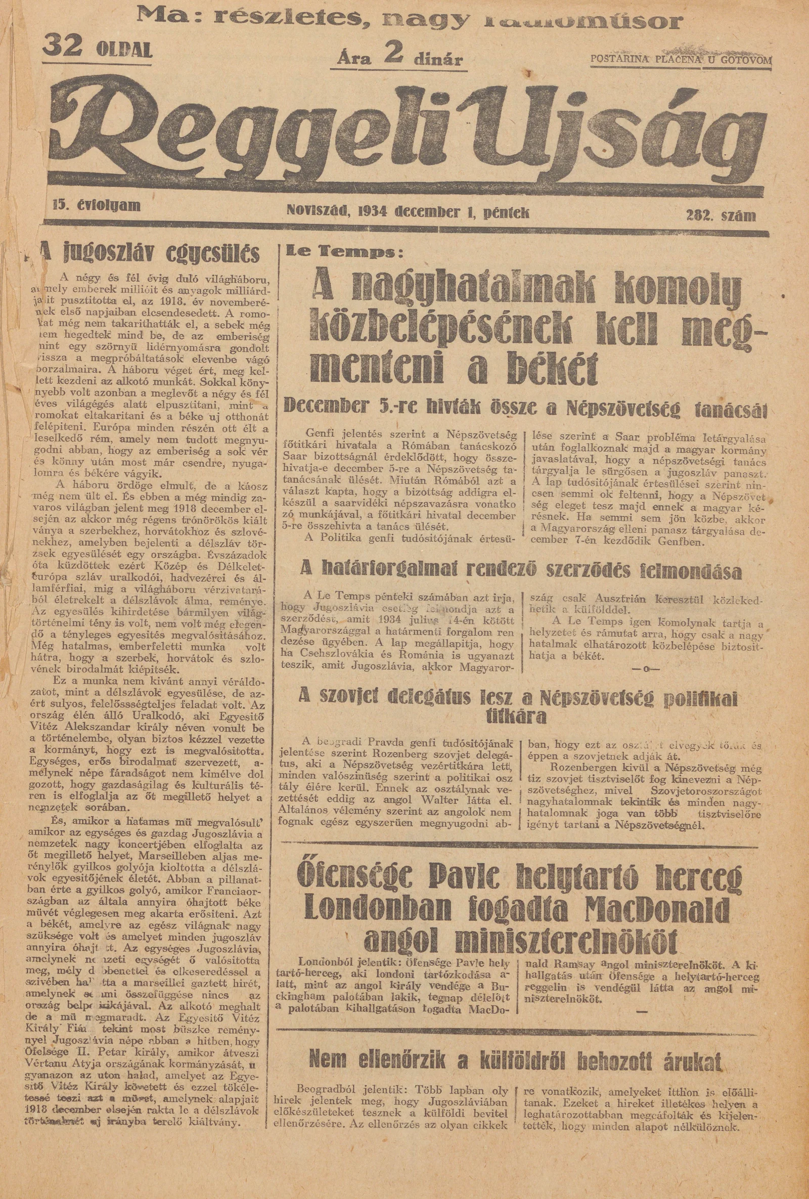 Reggeli Újság, 15. évf. 1934. december 1. 282. sz.