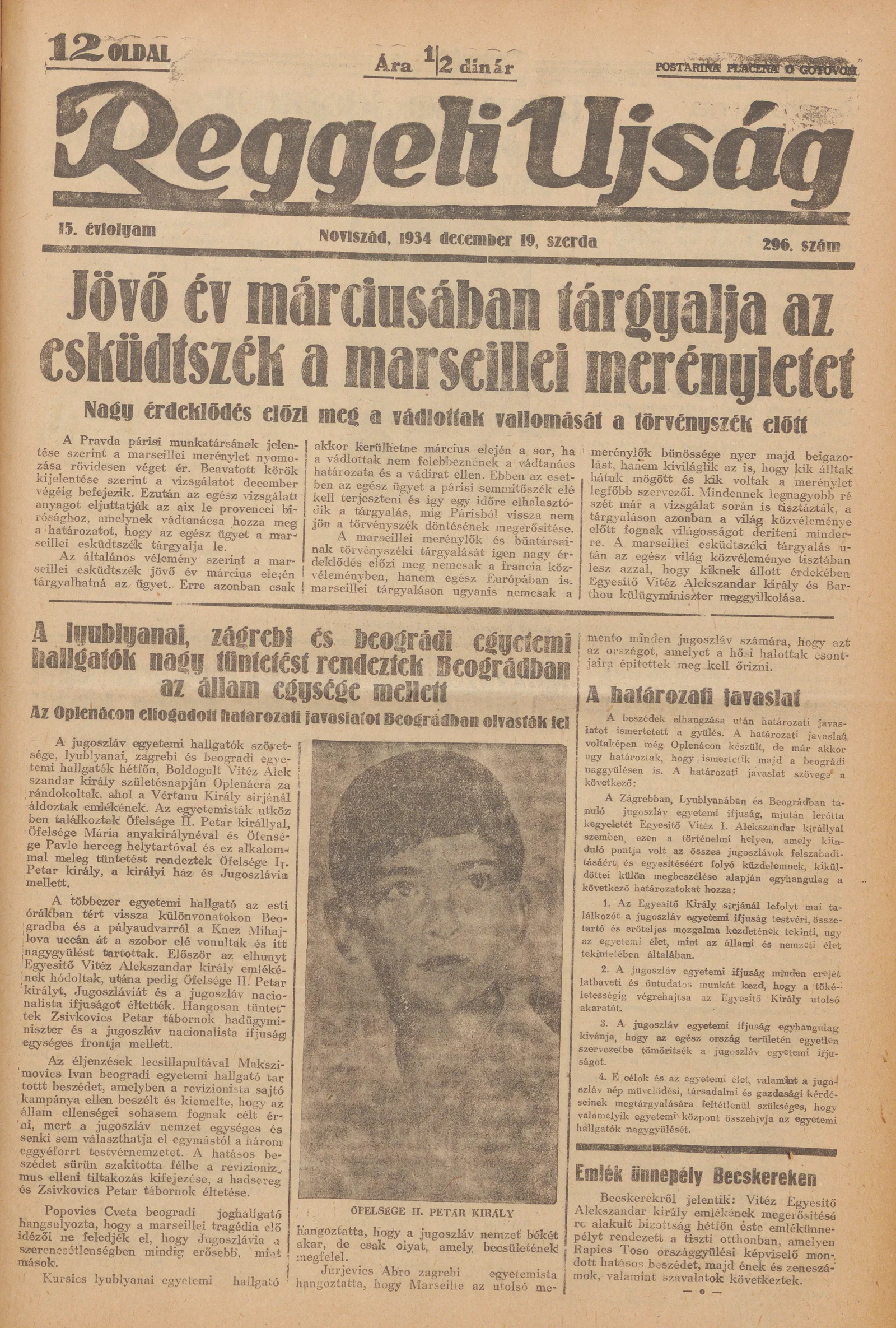 Reggeli Újság, 15. évf. 1934. december 19. 296. sz.