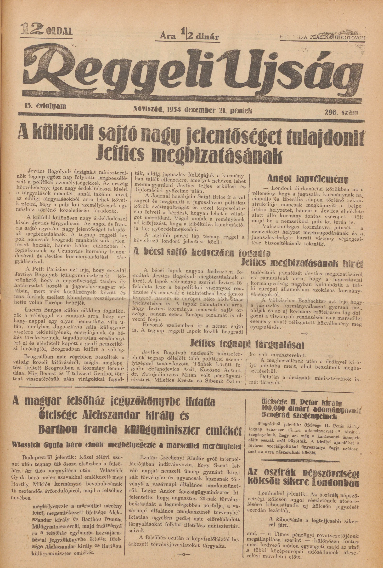 Reggeli Újság, 15. évf. 1934. december 21. 298. sz.