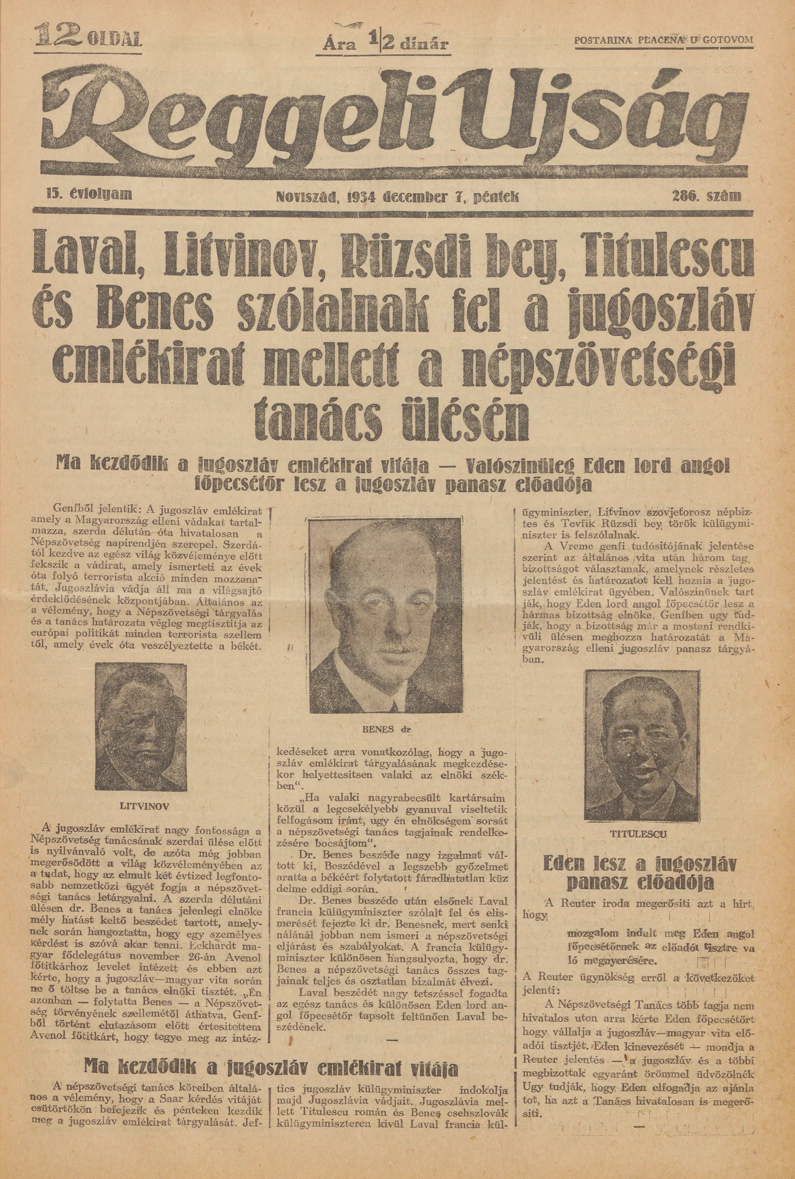 Reggeli Újság, 15. évf. 1934. december 7. 286. sz.