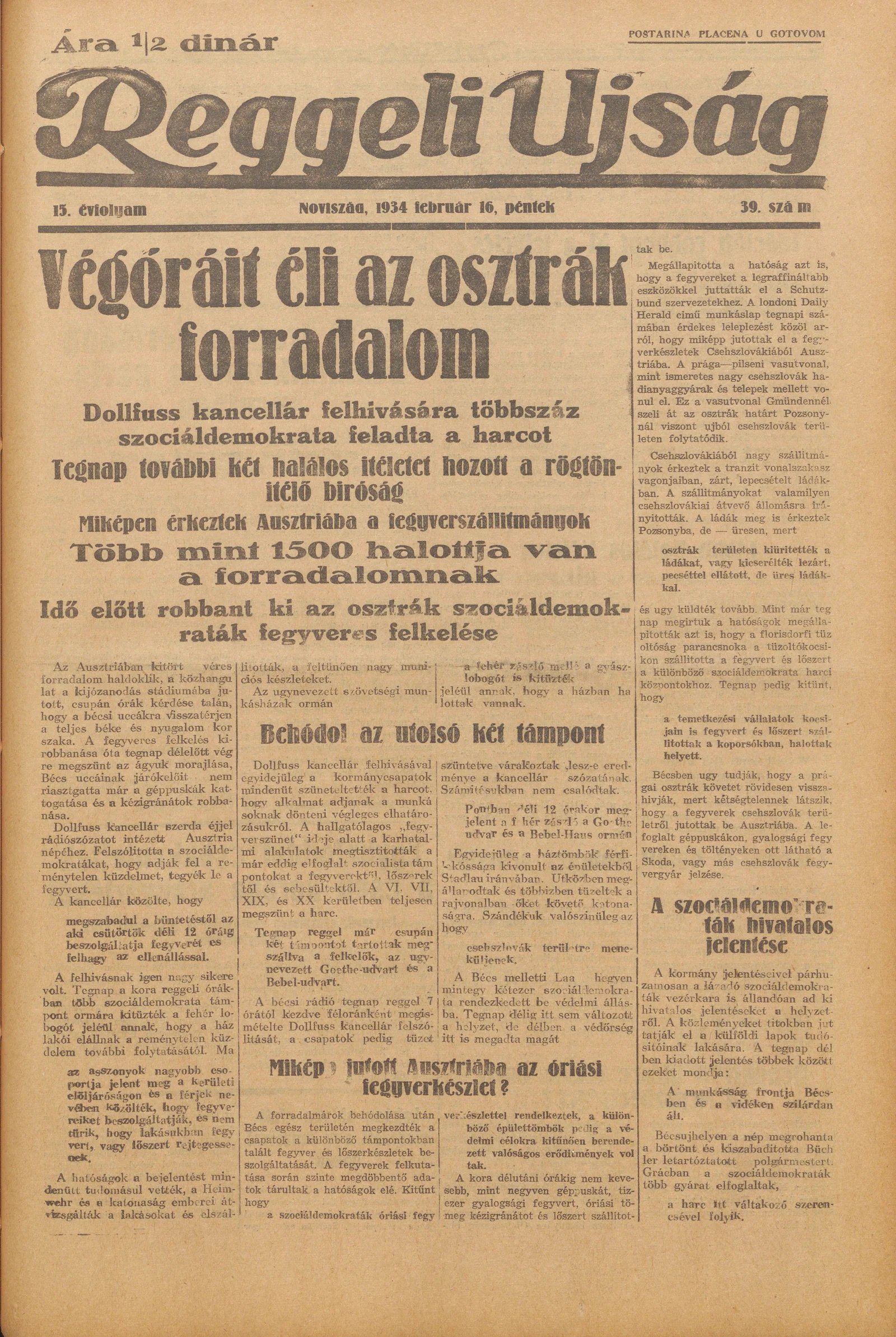 Reggeli Újság, 15. évf. 1934. február 16. 39. sz.