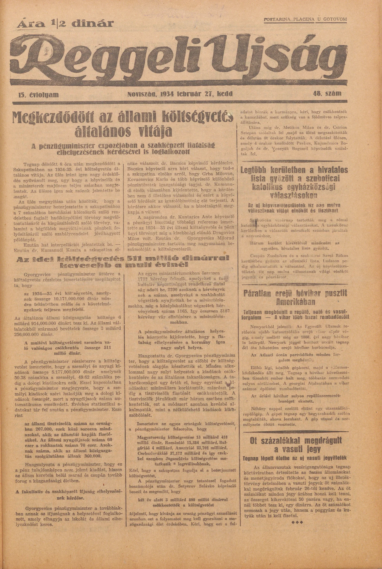 Reggeli Újság, 15. évf. 1934. február 27. 48. sz.