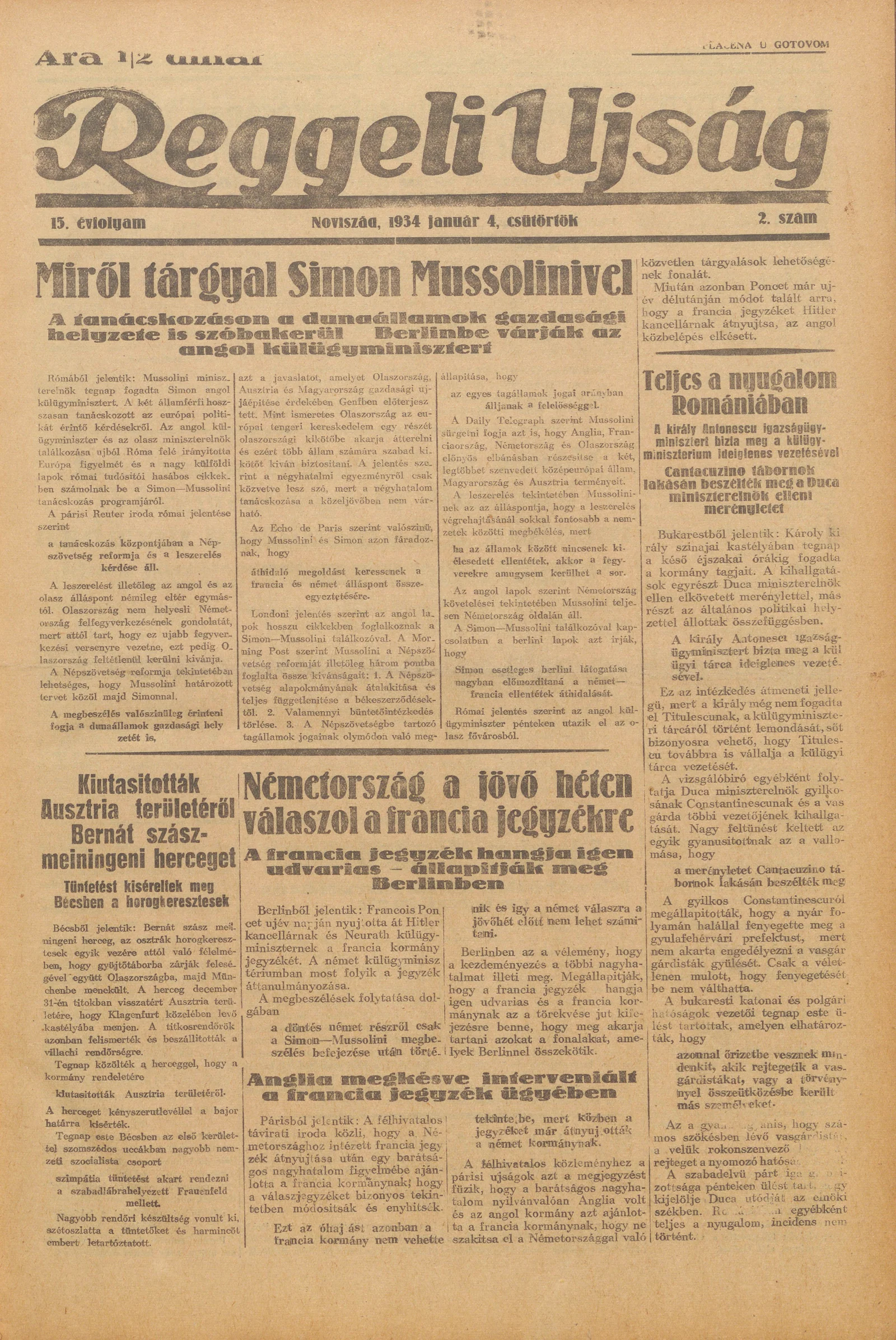 Reggeli Újság, 15. évf. 1934. január 4. 2. sz.