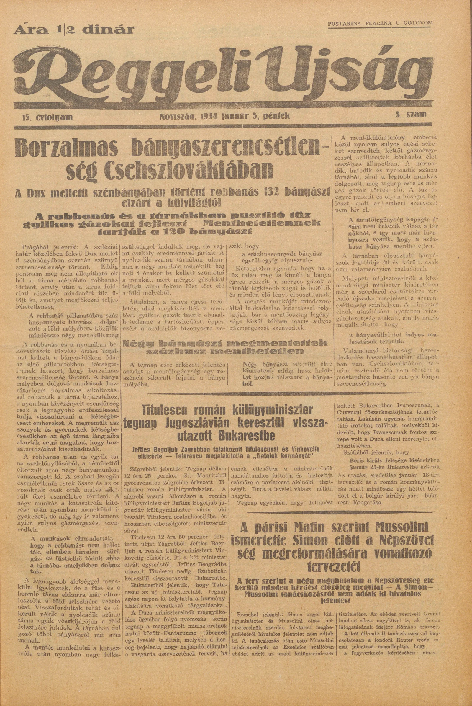 Reggeli Újság, 15. évf. 1934. január 5. 3. sz.