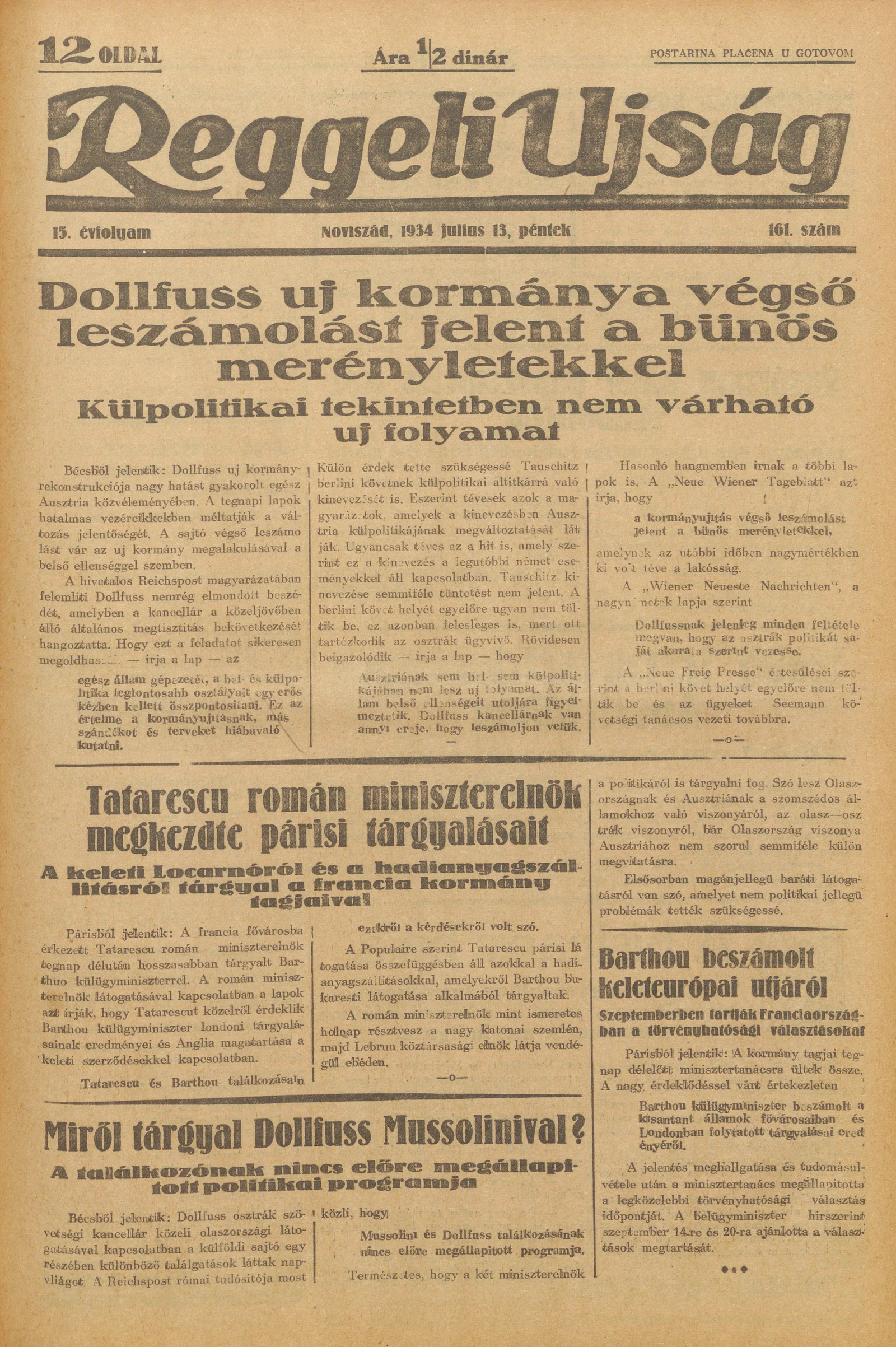 Reggeli Újság, 15. évf. 1934. július 13. 161. sz.