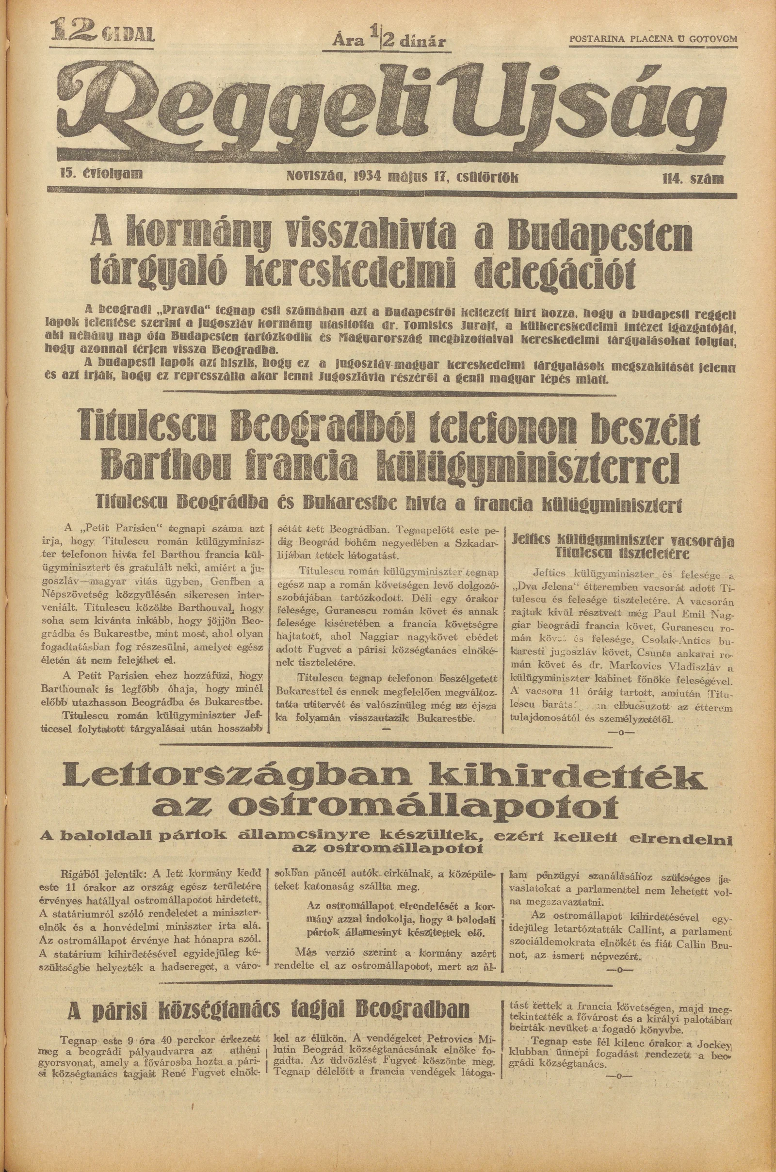 Reggeli Újság, 15. évf. 1934. május 17. 114. sz.