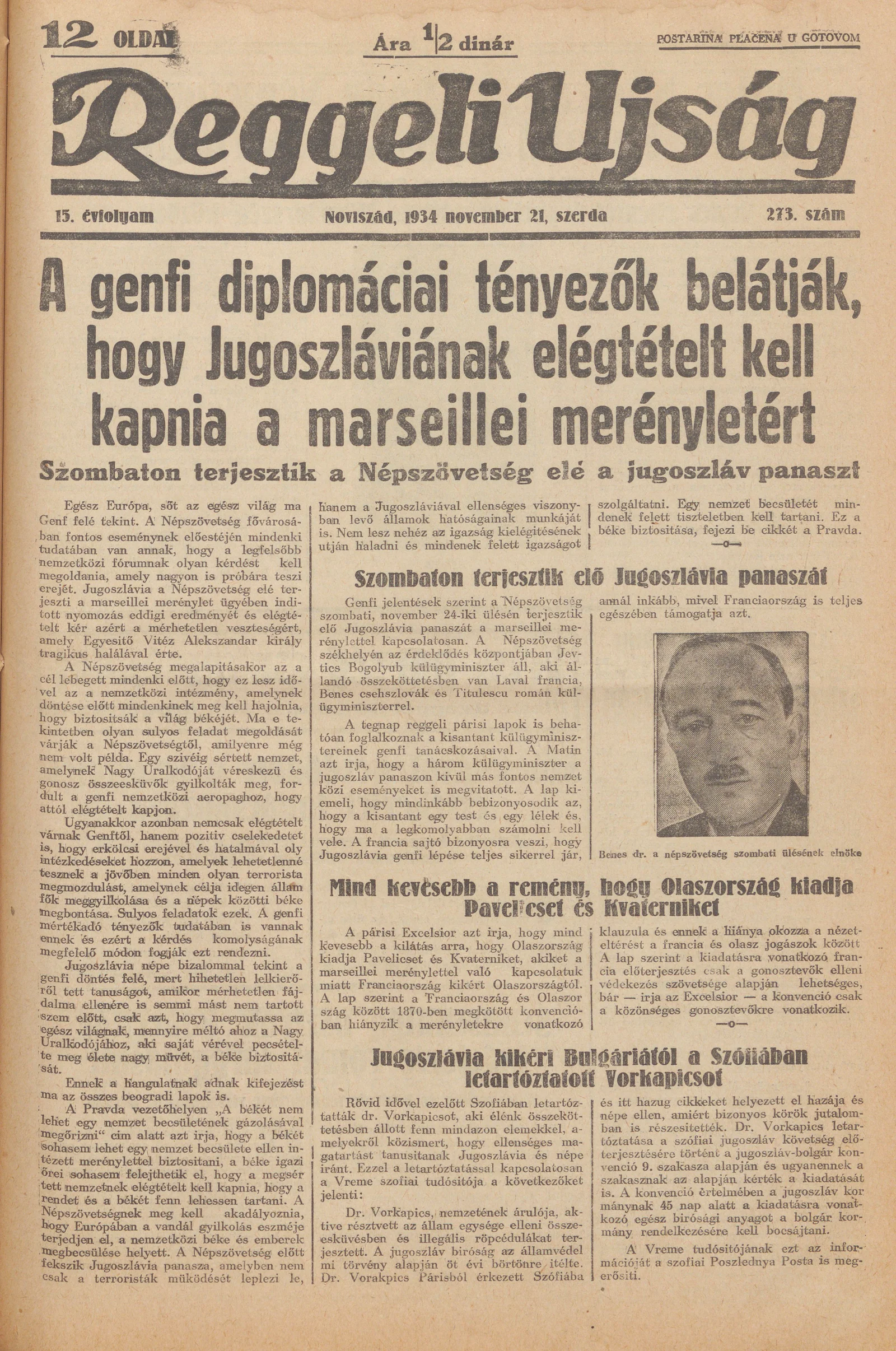 Reggeli Újság, 15. évf. 1934. november 21. 273. sz.