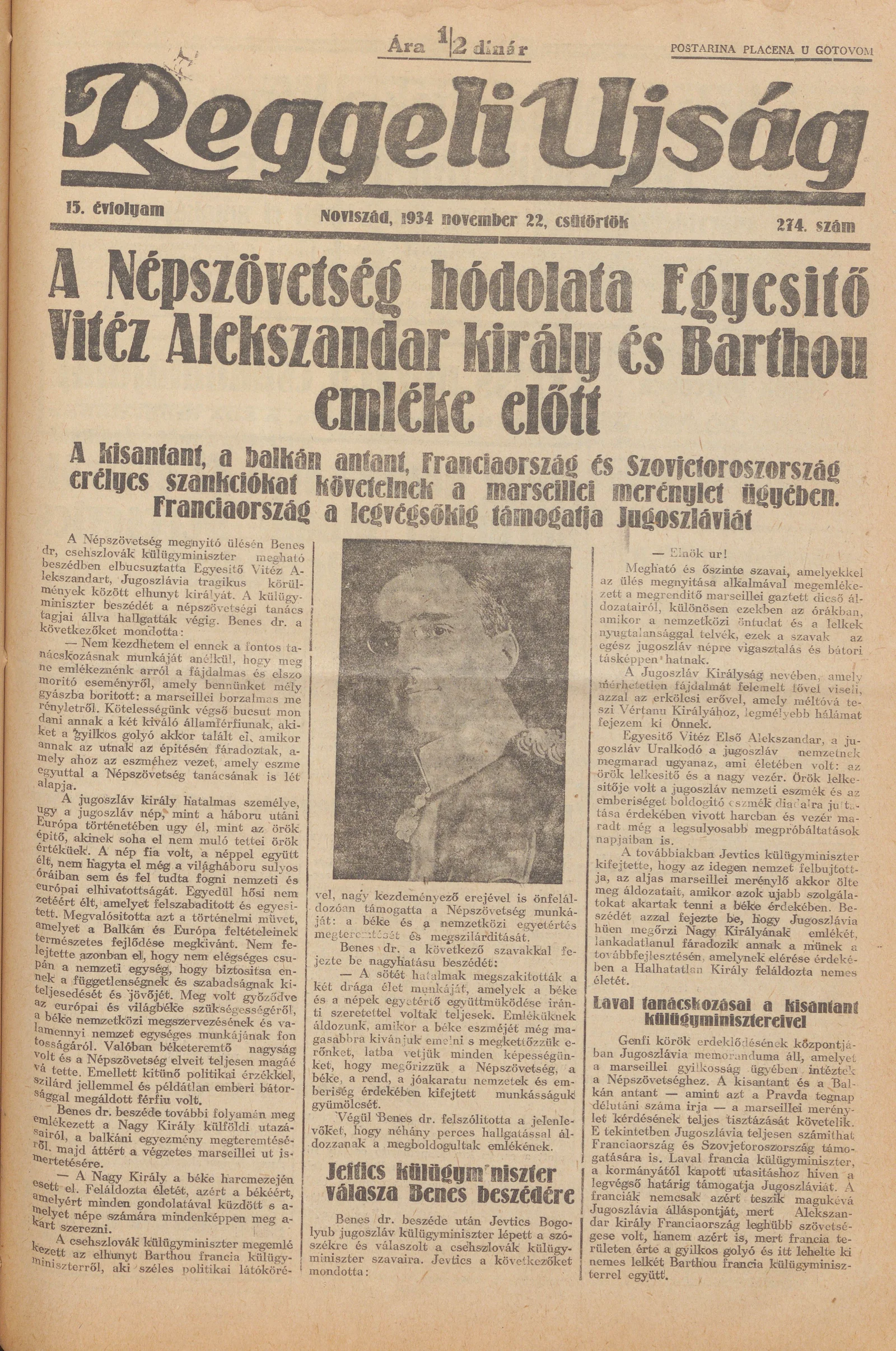 Reggeli Újság, 15. évf. 1934. november 22. 274. sz.