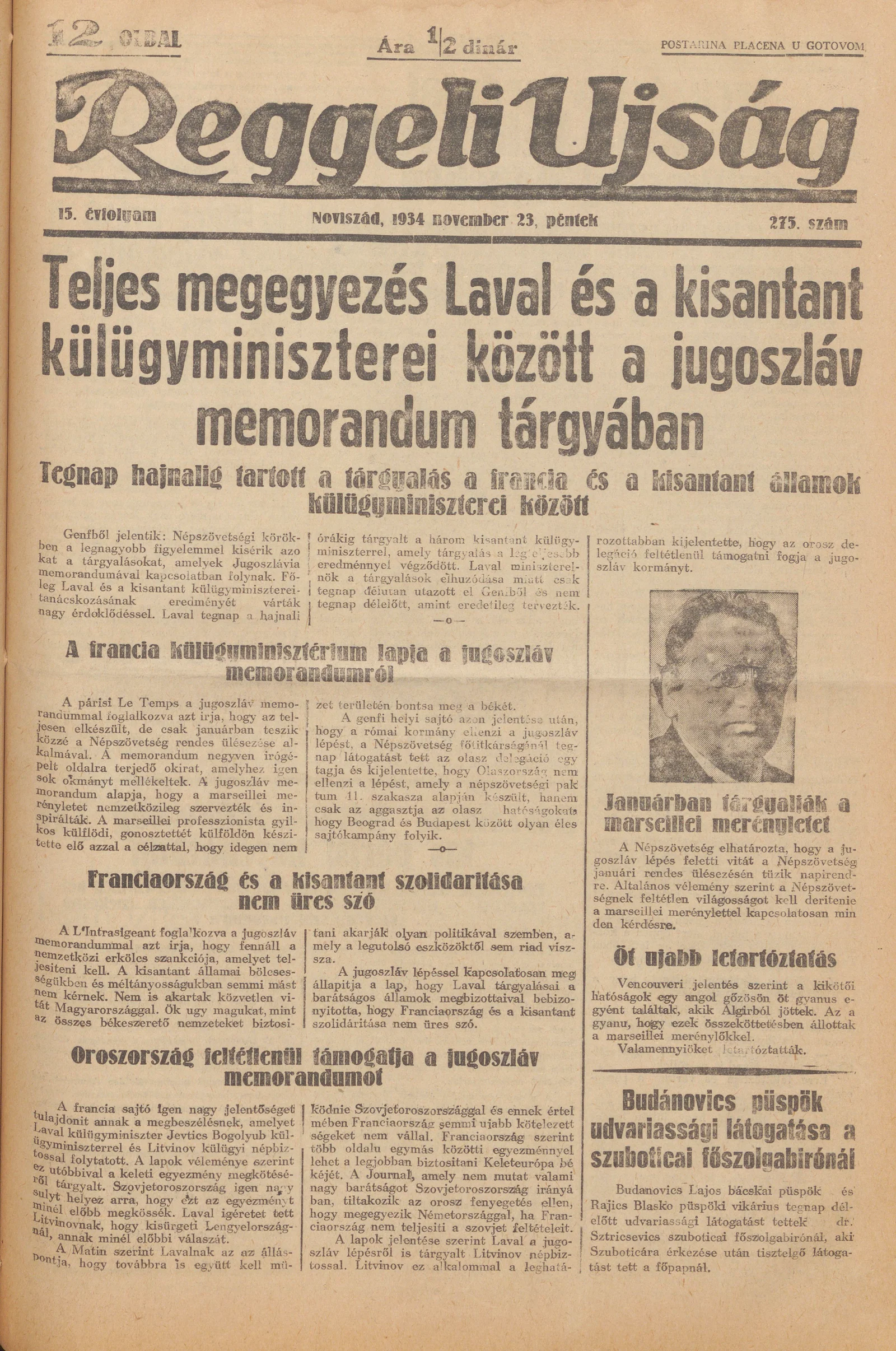 Reggeli Újság, 15. évf. 1934. november 23. 275. sz.