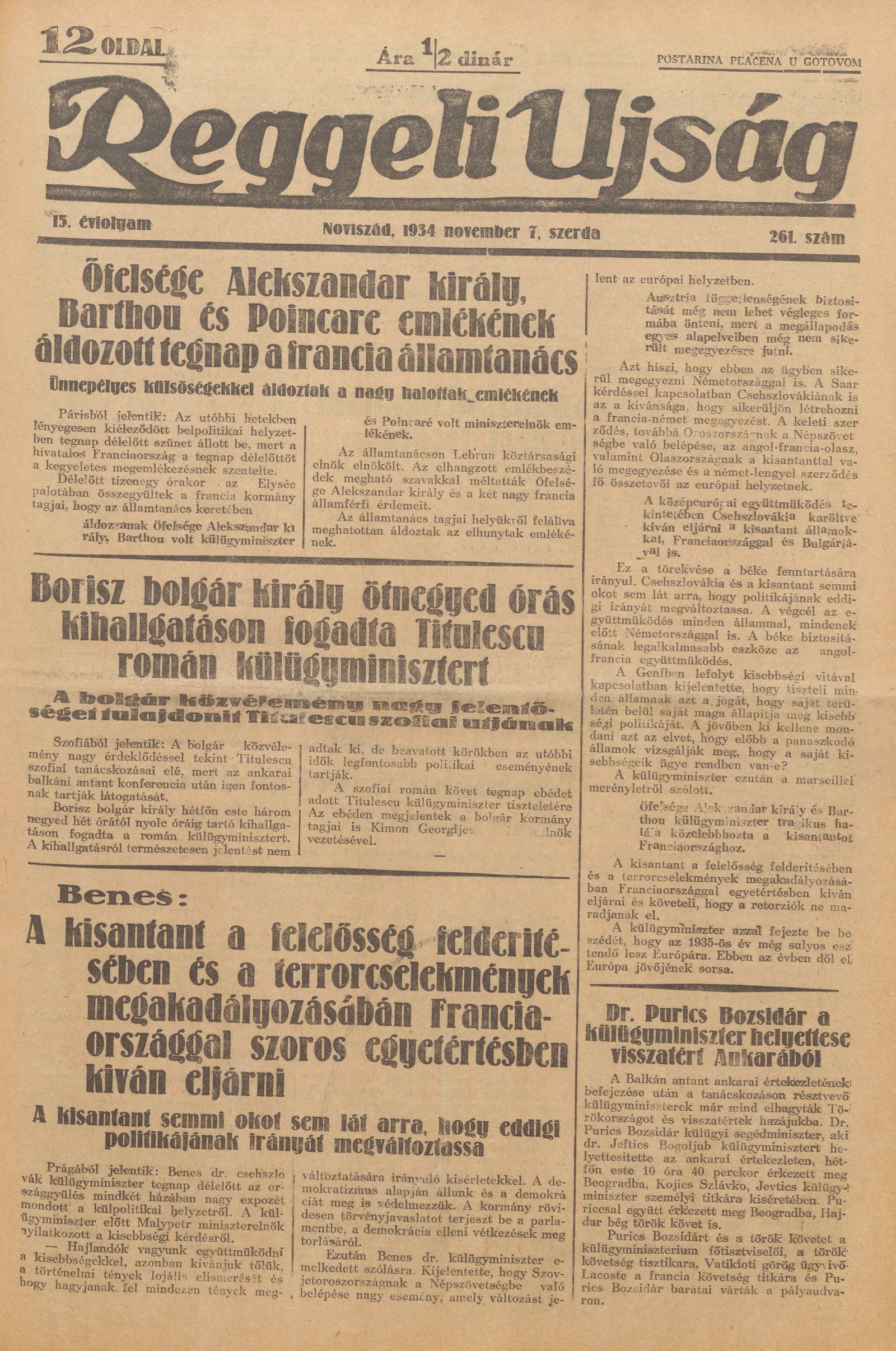 Reggeli Újság, 15. évf. 1934. november 7. 261. sz.