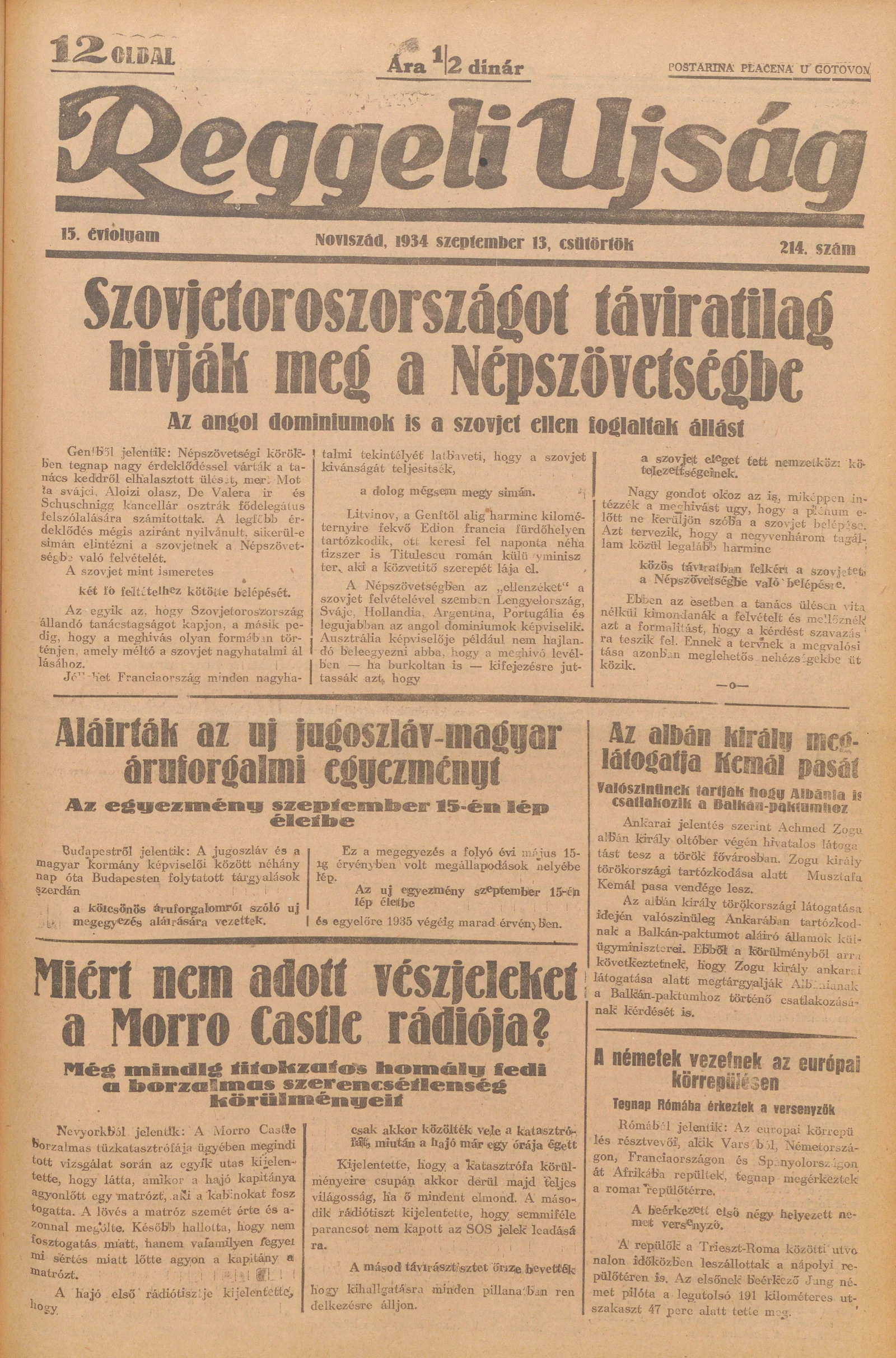Reggeli Újság, 15. évf. 1934. szeptember 13. 214. sz.