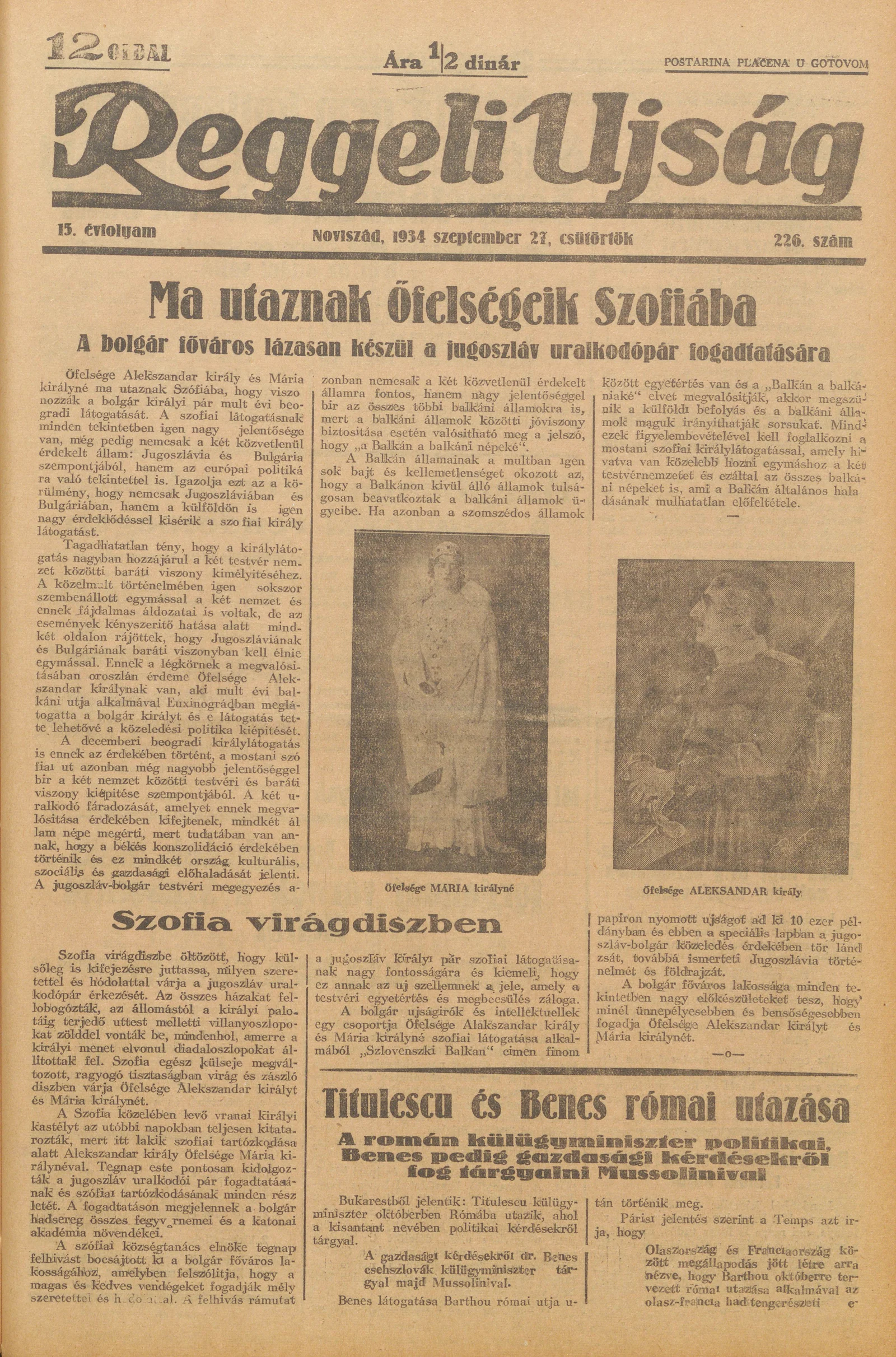Reggeli Újság, 15. évf. 1934. szeptember 27. 226. sz.