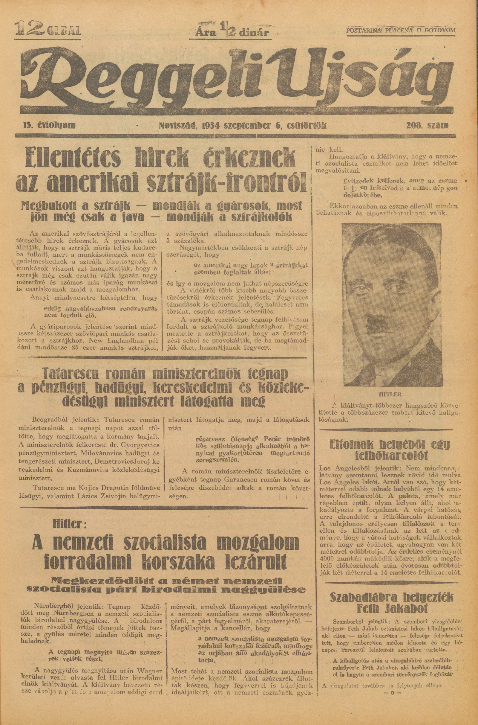 Reggeli Újság, 15. évf. 1934. szeptember 6. 208. sz.