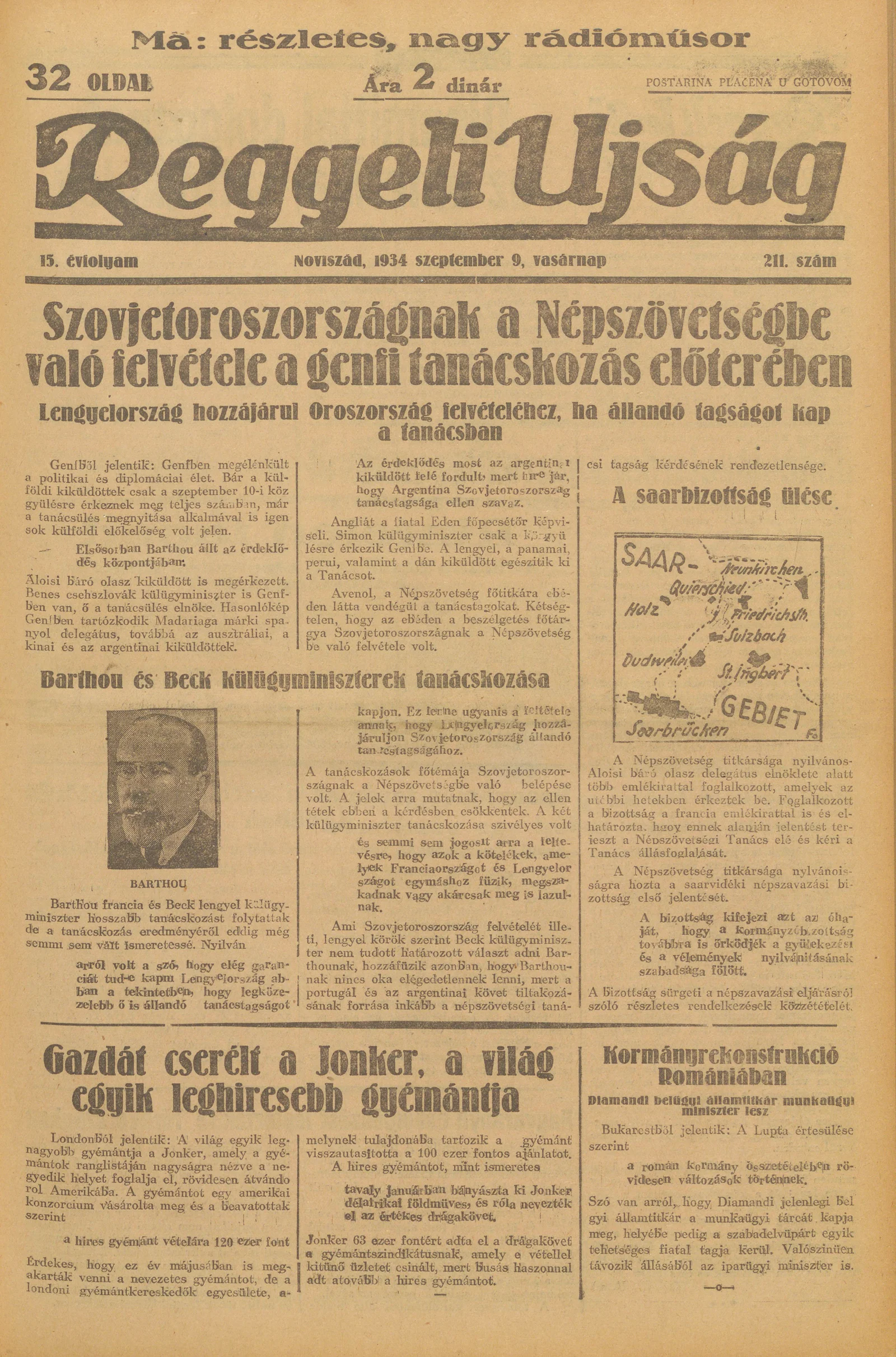 Reggeli Újság, 15. évf. 1934. szeptember 9. 211. sz.