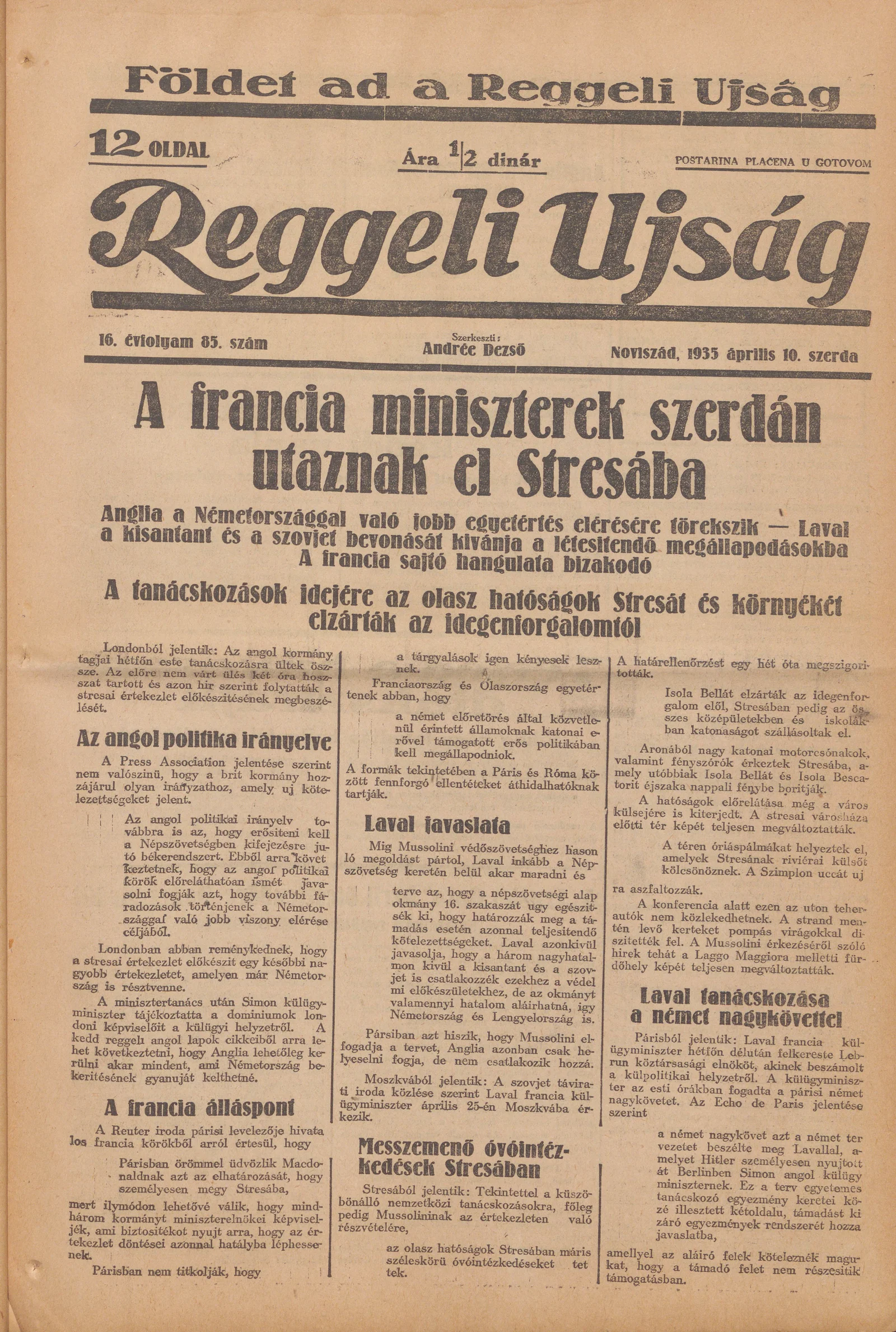 Reggeli Újság, 16. évf. 1935. április 10. 85. sz.