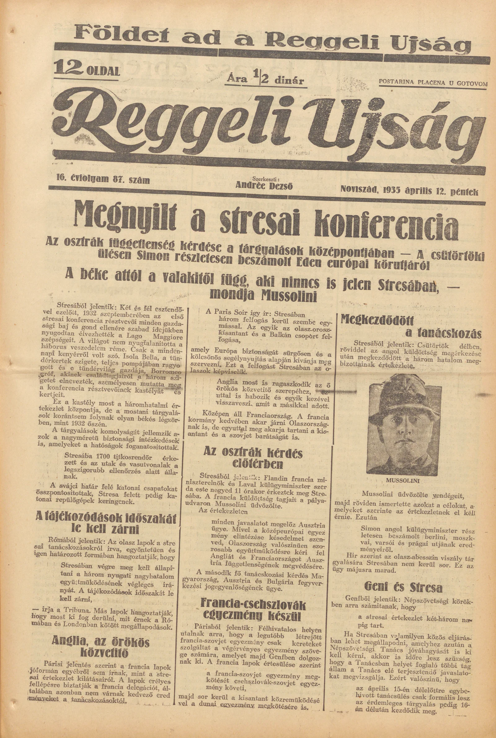 Reggeli Újság, 16. évf. 1935. április 12. 87. sz.