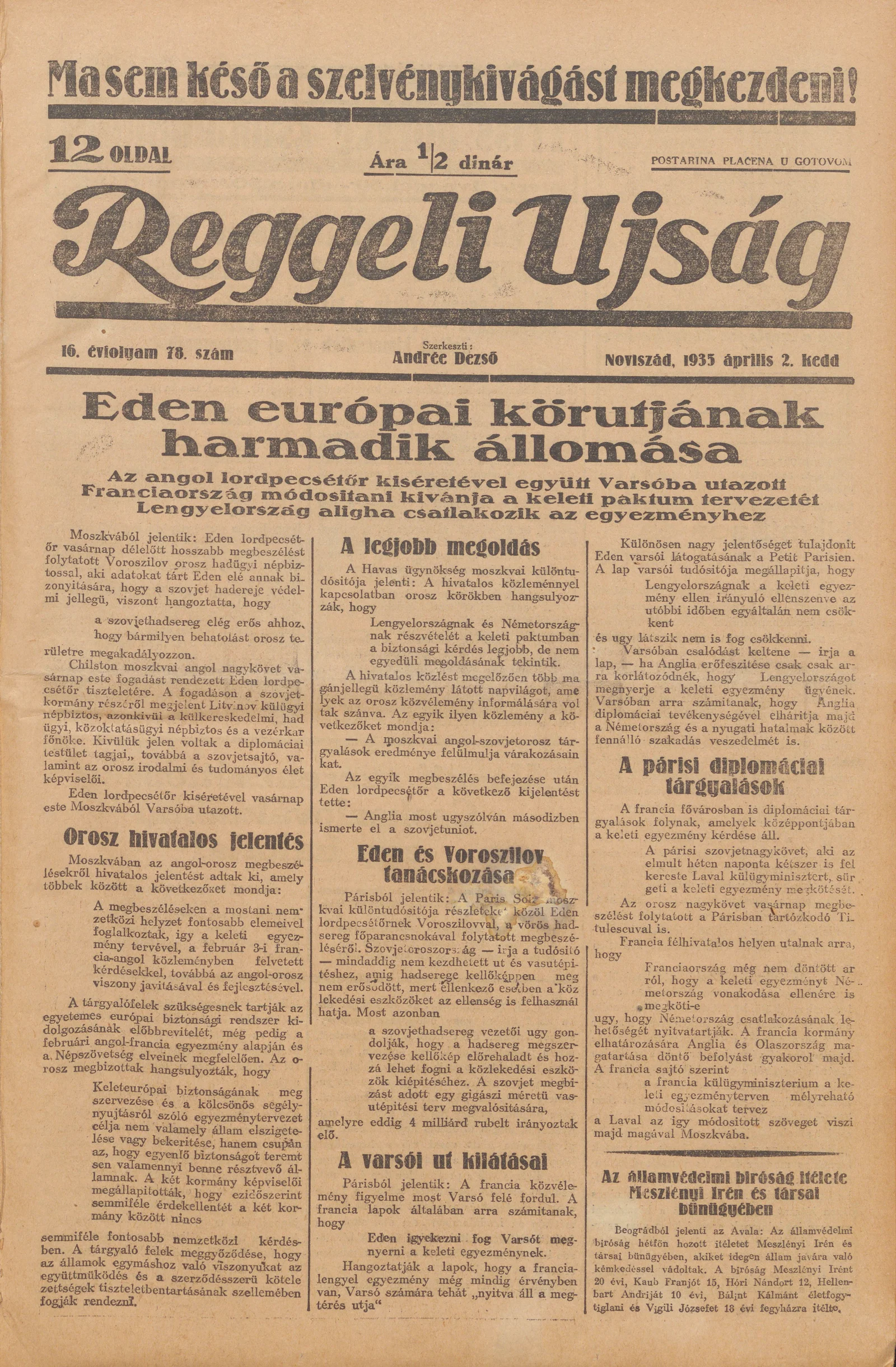 Reggeli Újság, 16. évf. 1935. április 2. 78. sz.