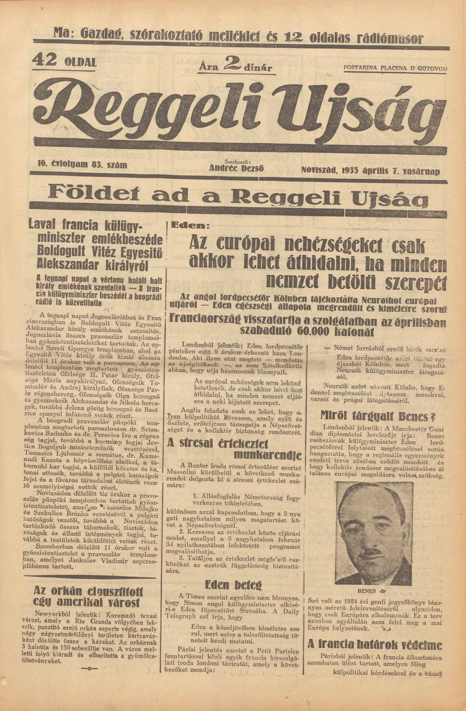 Reggeli Újság, 16. évf. 1935. április 7. 83. sz.