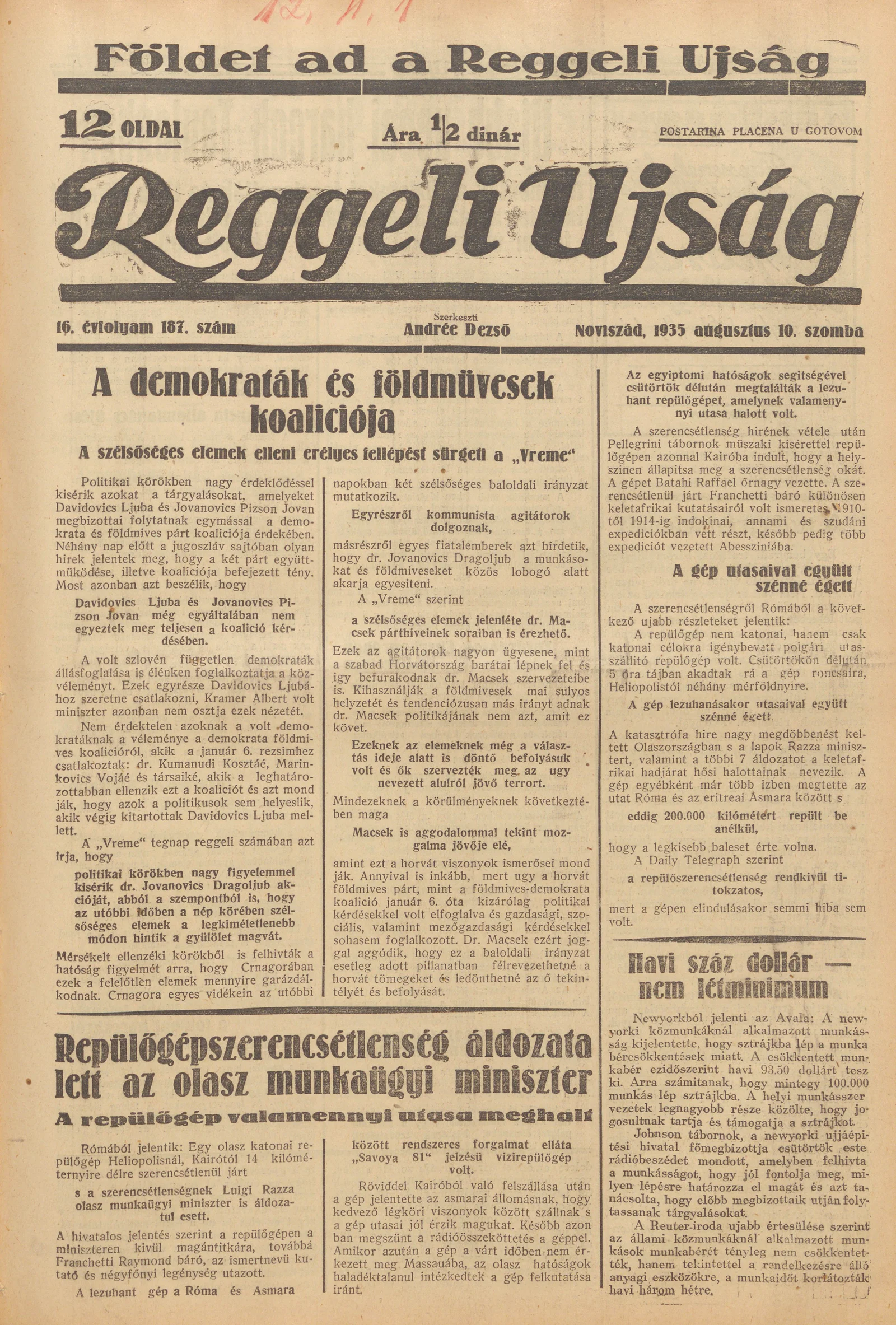 Reggeli Újság, 16. évf. 1935. augusztus 10. 187. sz.
