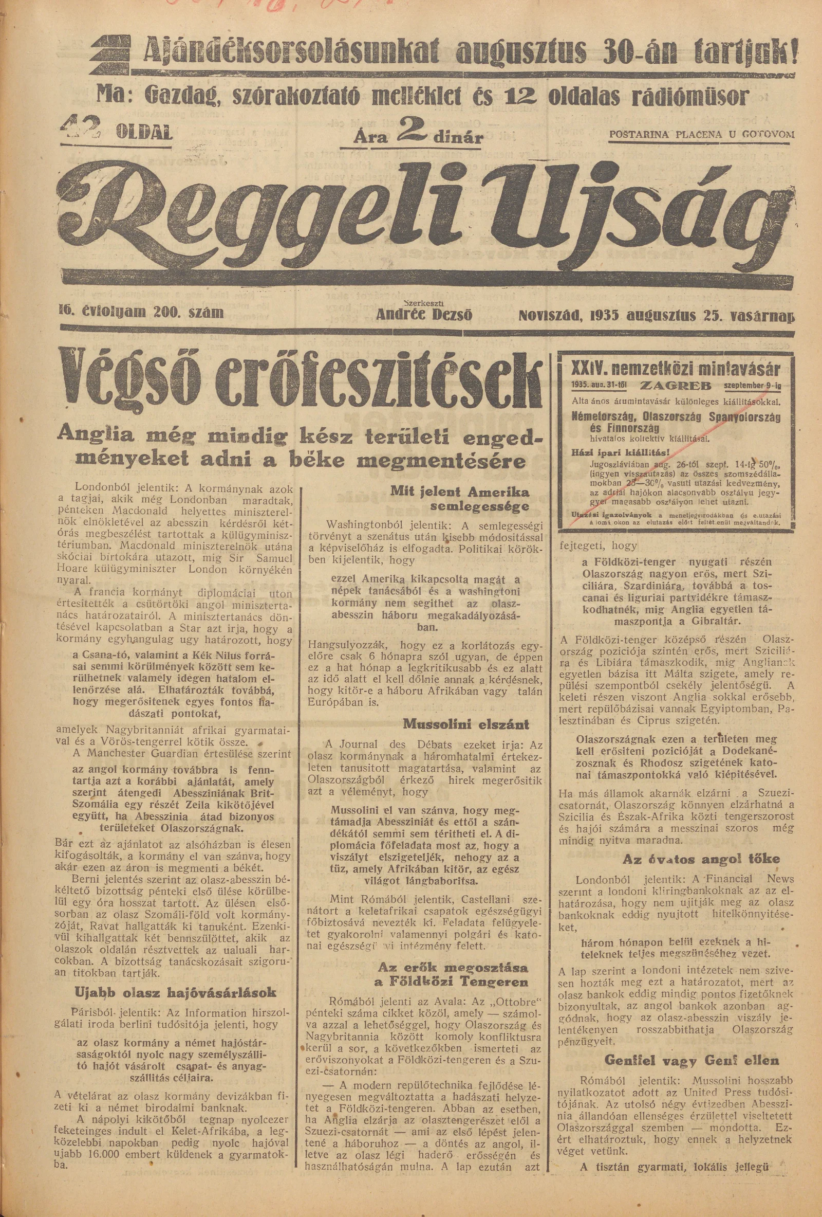 Reggeli Újság, 16. évf. 1935. augusztus 25. 200. sz.