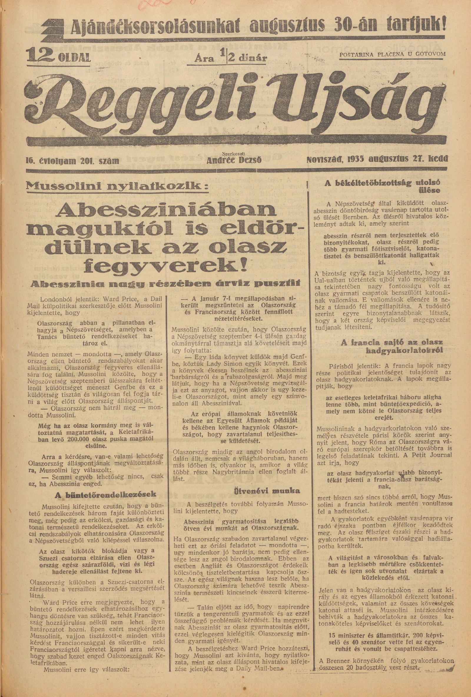 Reggeli Újság, 16. évf. 1935. augusztus 27. 201. sz.