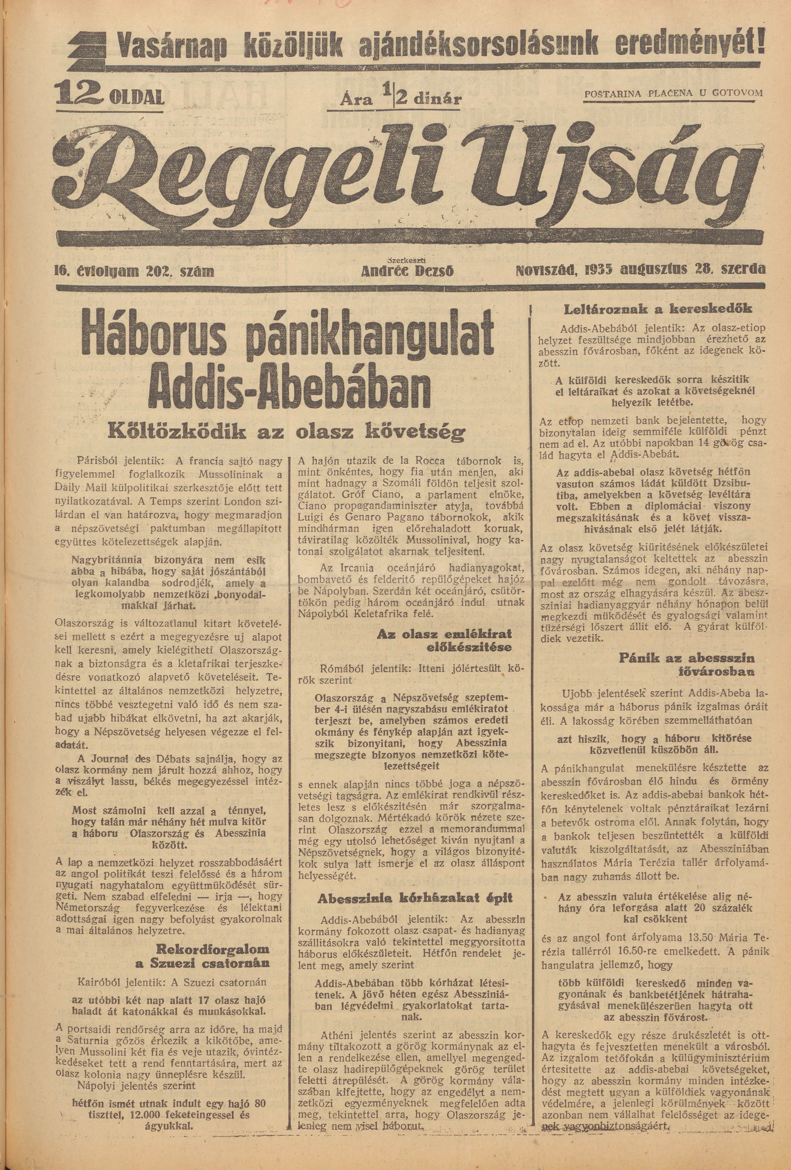 Reggeli Újság, 16. évf. 1935. augusztus 28. 202. sz.