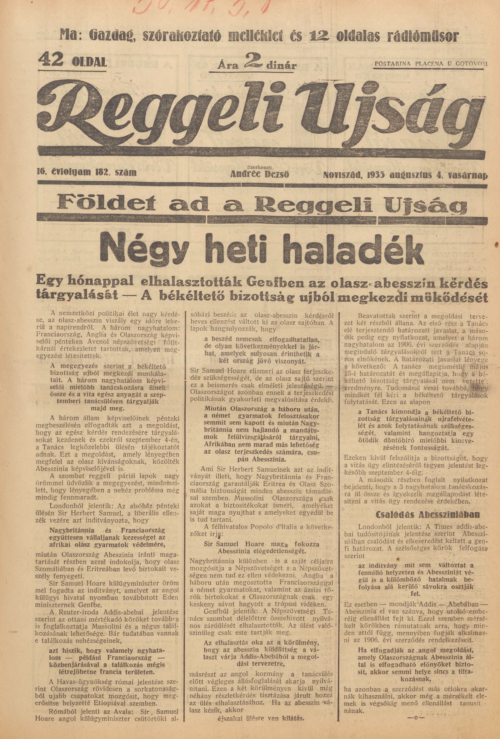 Reggeli Újság, 16. évf. 1935. augusztus 4. 182. sz.