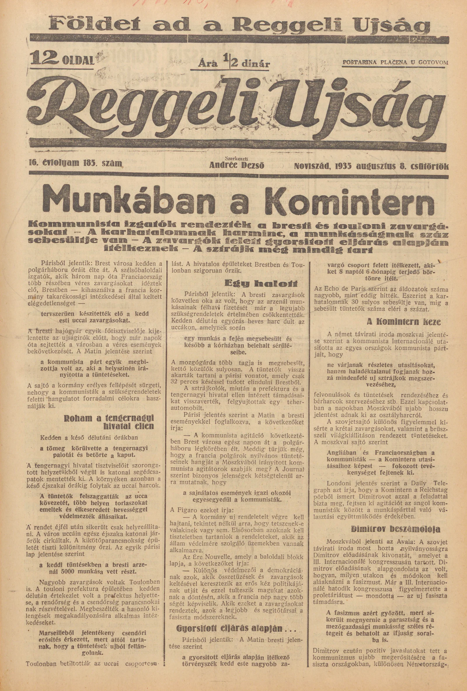 Reggeli Újság, 16. évf. 1935. augusztus 8. 185. sz.