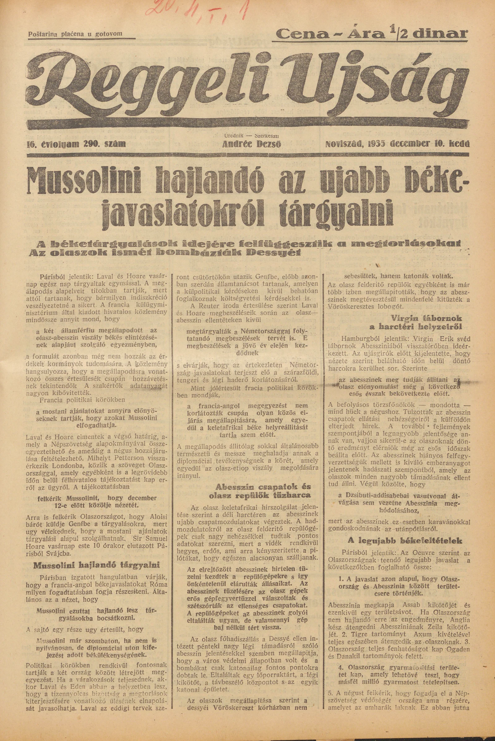 Reggeli Újság, 16. évf. 1935. december 10. 290. sz.