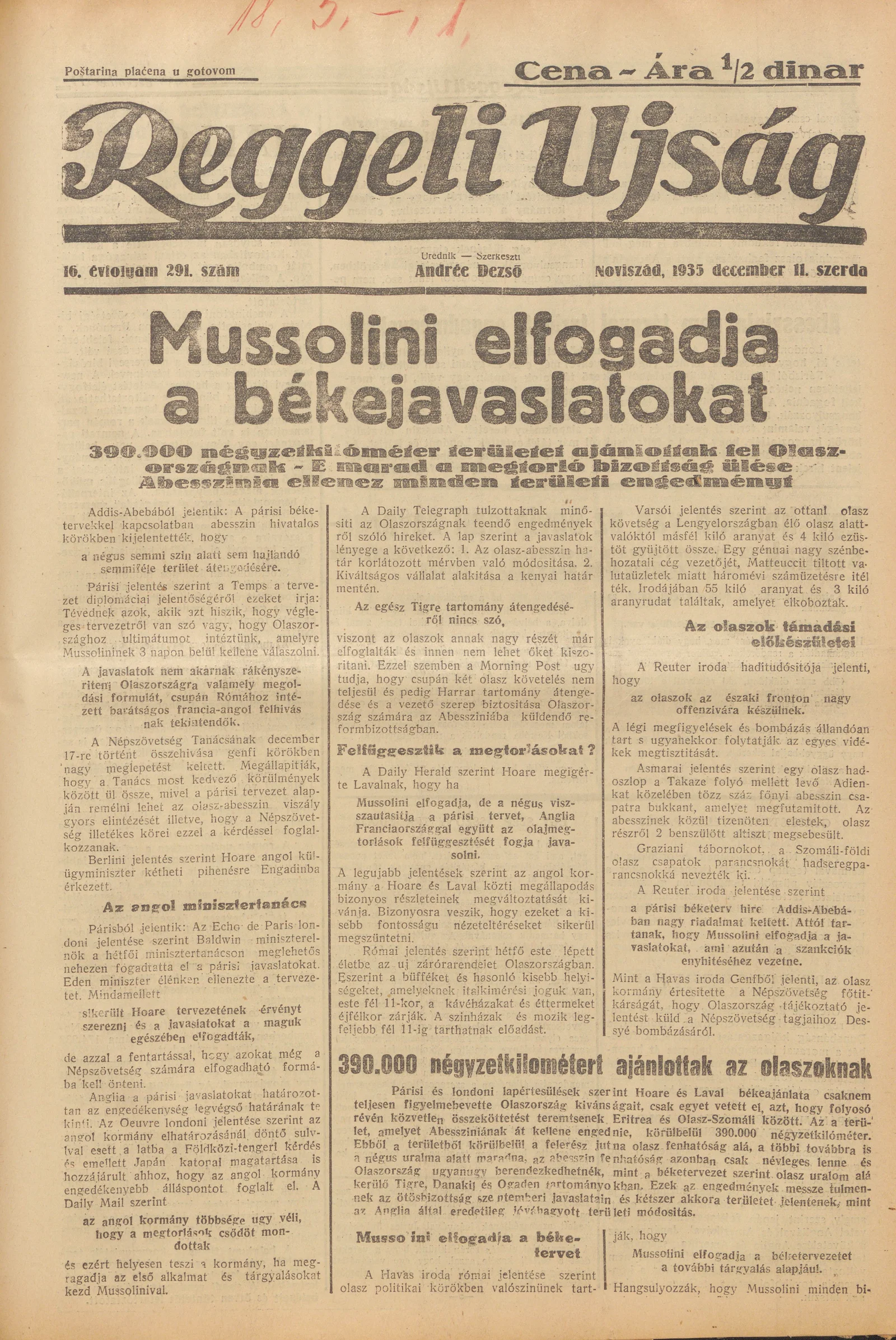 Reggeli Újság, 16. évf. 1935. december 11. 291. sz.