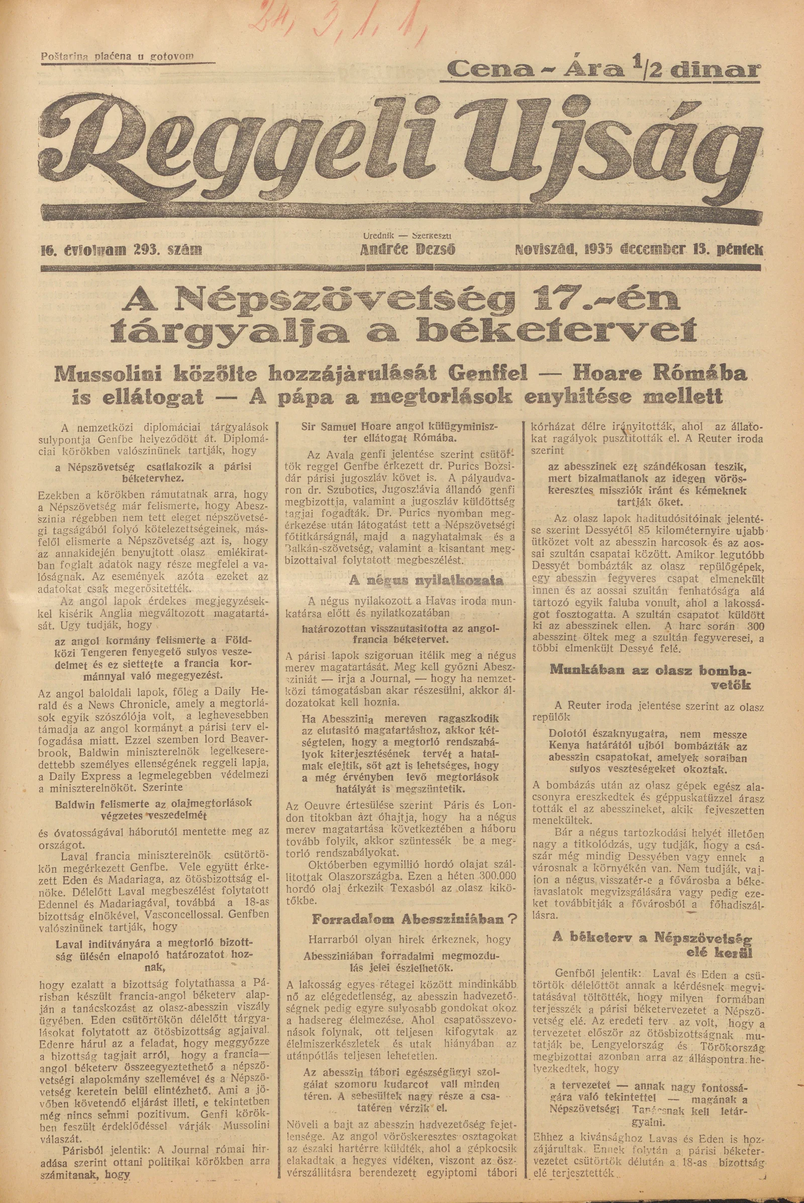 Reggeli Újság, 16. évf. 1935. december 13. 293. sz.