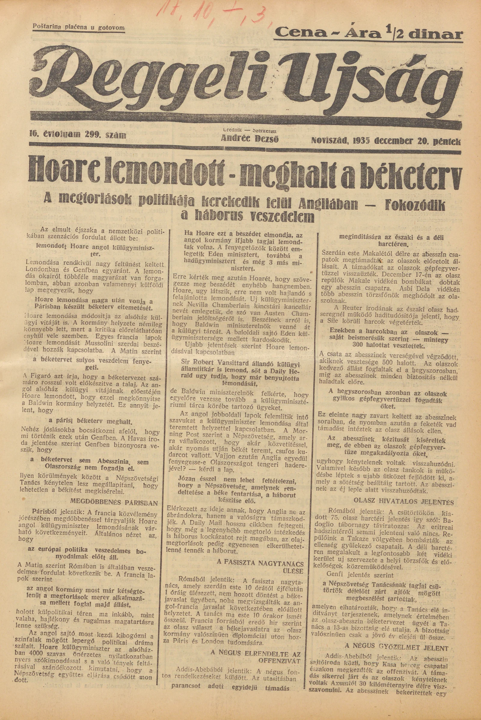 Reggeli Újság, 16. évf. 1935. december 20. 299. sz.