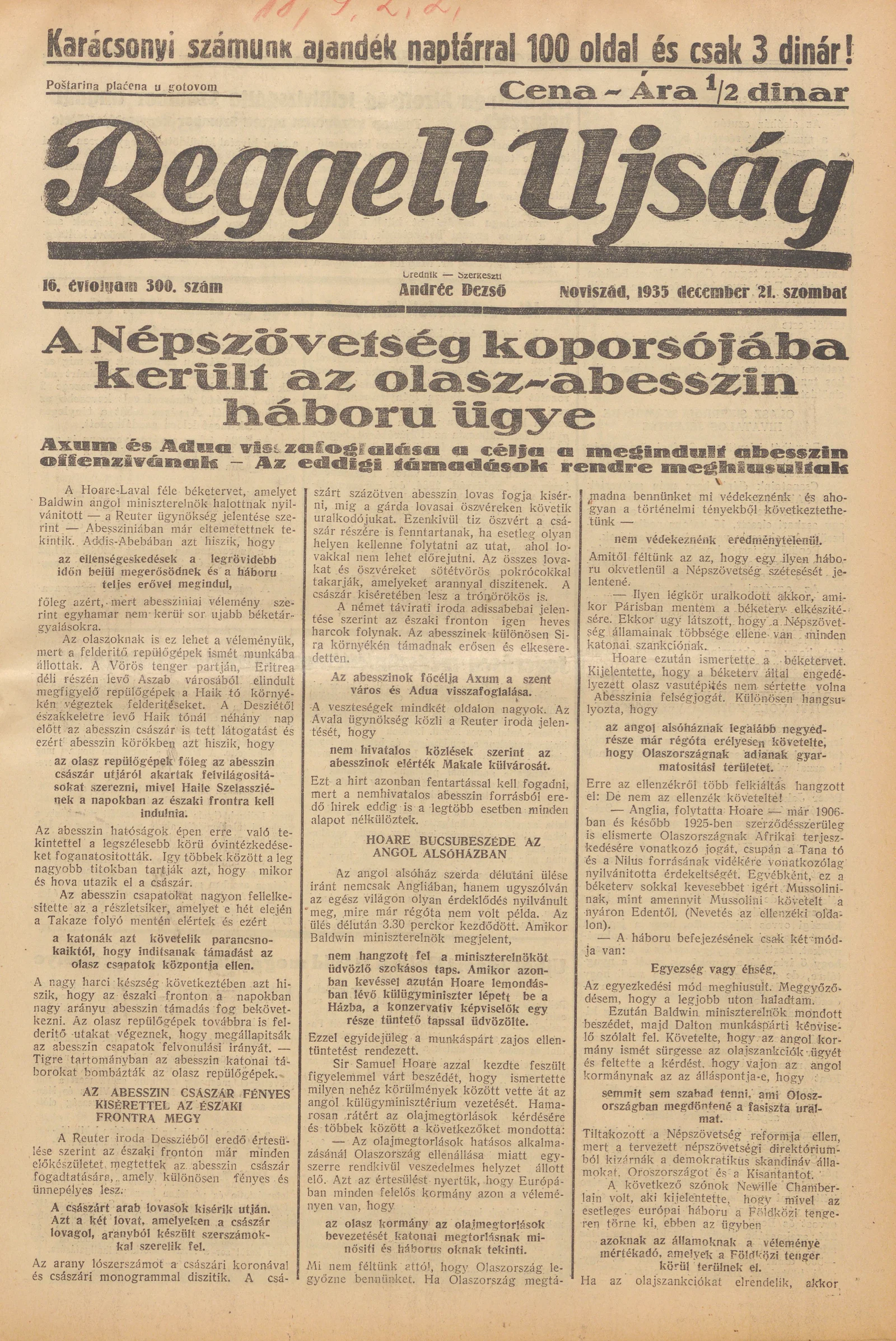 Reggeli Újság, 16. évf. 1935. december 21. 300. sz.