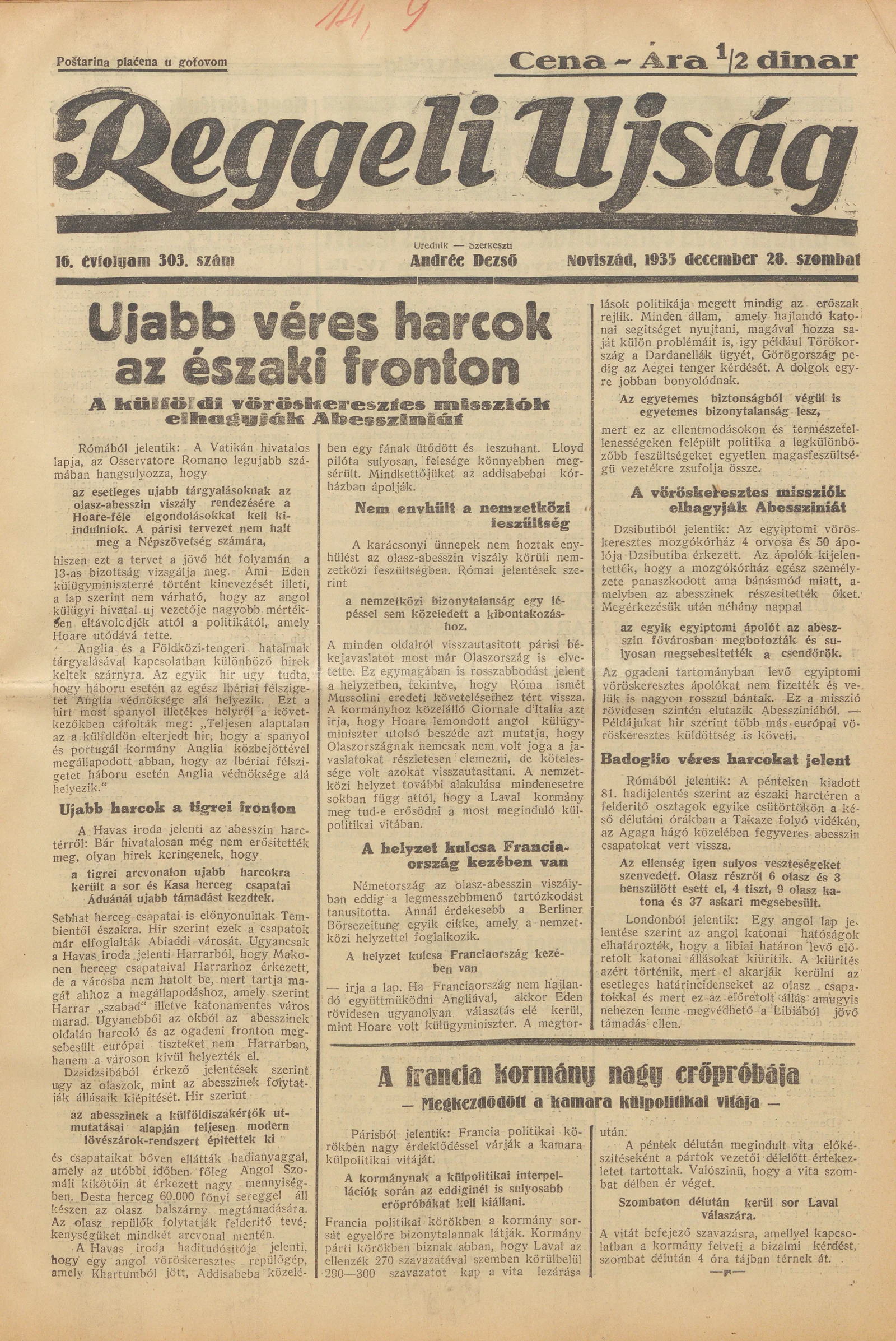 Reggeli Újság, 16. évf. 1935. december 28. 303. sz.