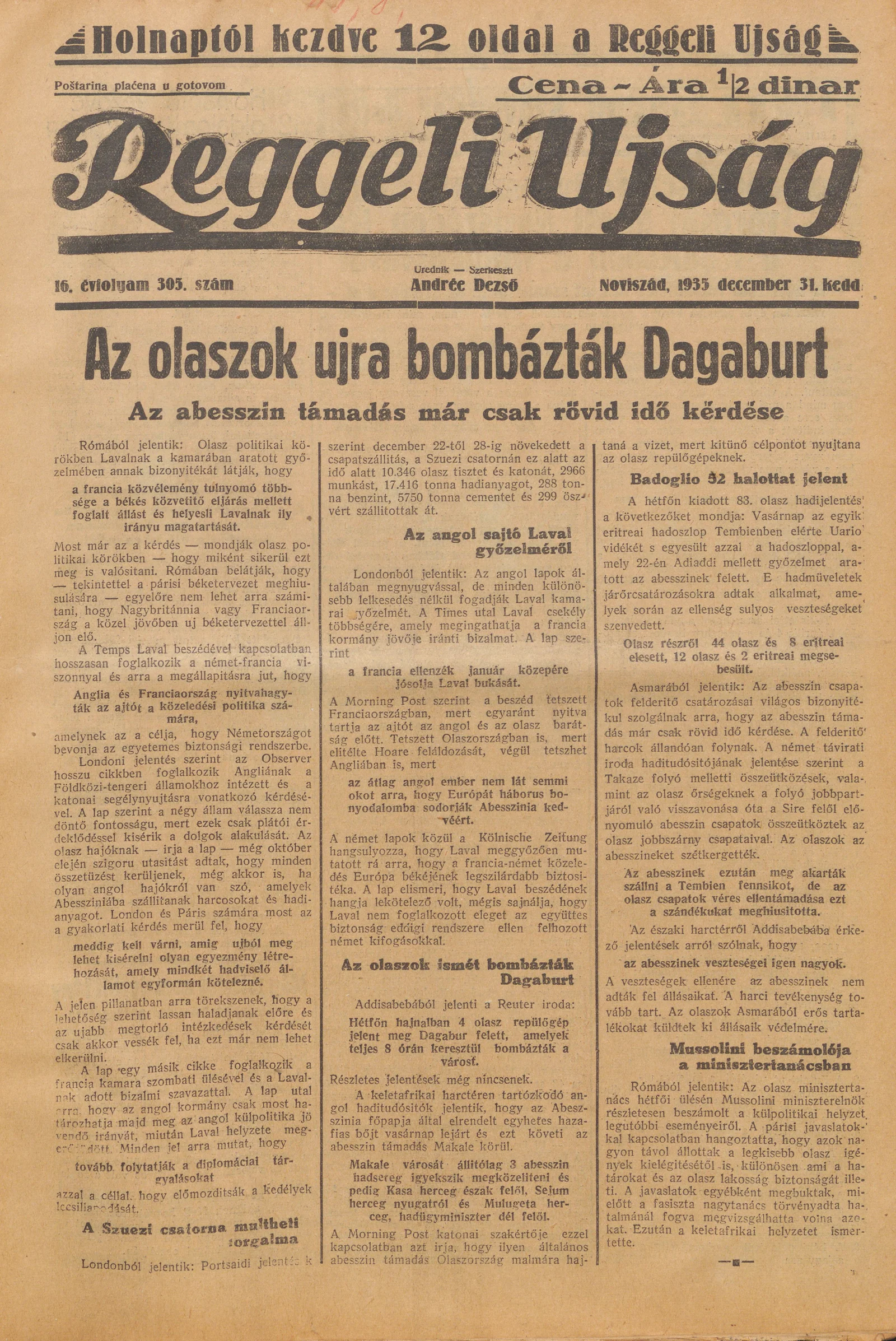 Reggeli Újság, 16. évf. 1935. december 31. 305. sz.
