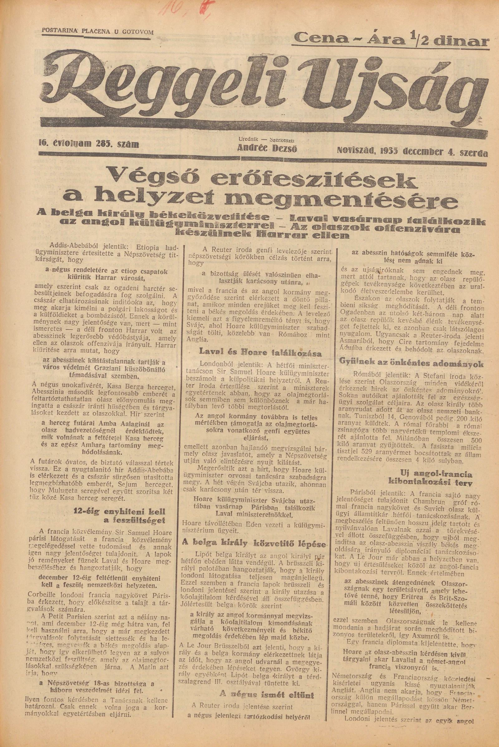 Reggeli Újság, 16. évf. 1935. december 4. 285. sz.