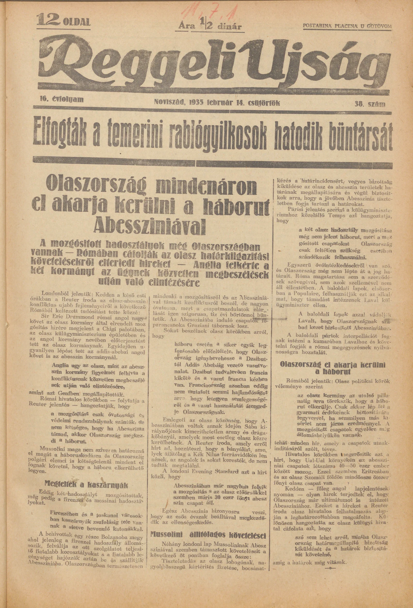 Reggeli Újság, 16. évf. 1935. február 14. 38. sz.