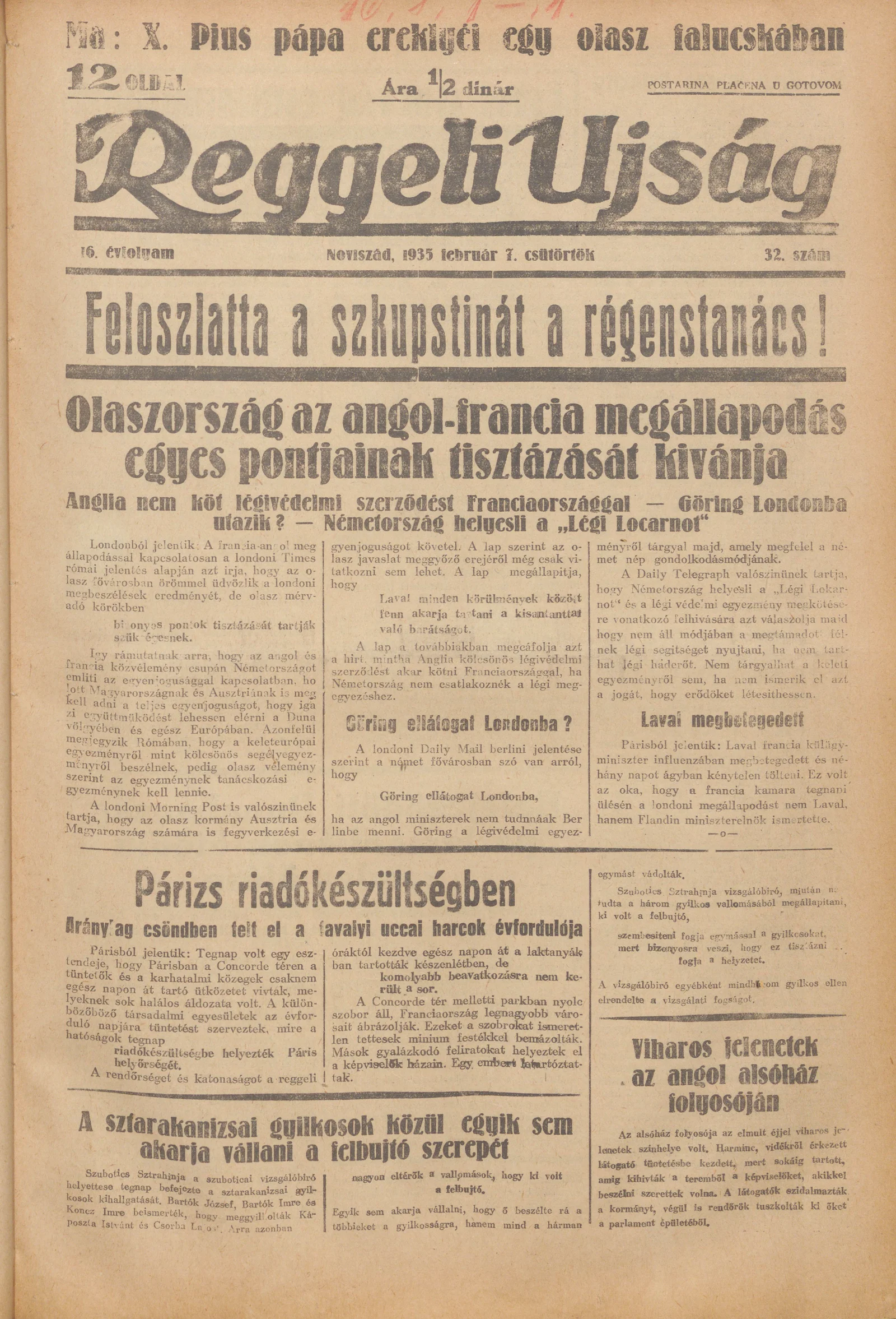 Reggeli Újság, 16. évf. 1935. február 7. 32. sz.