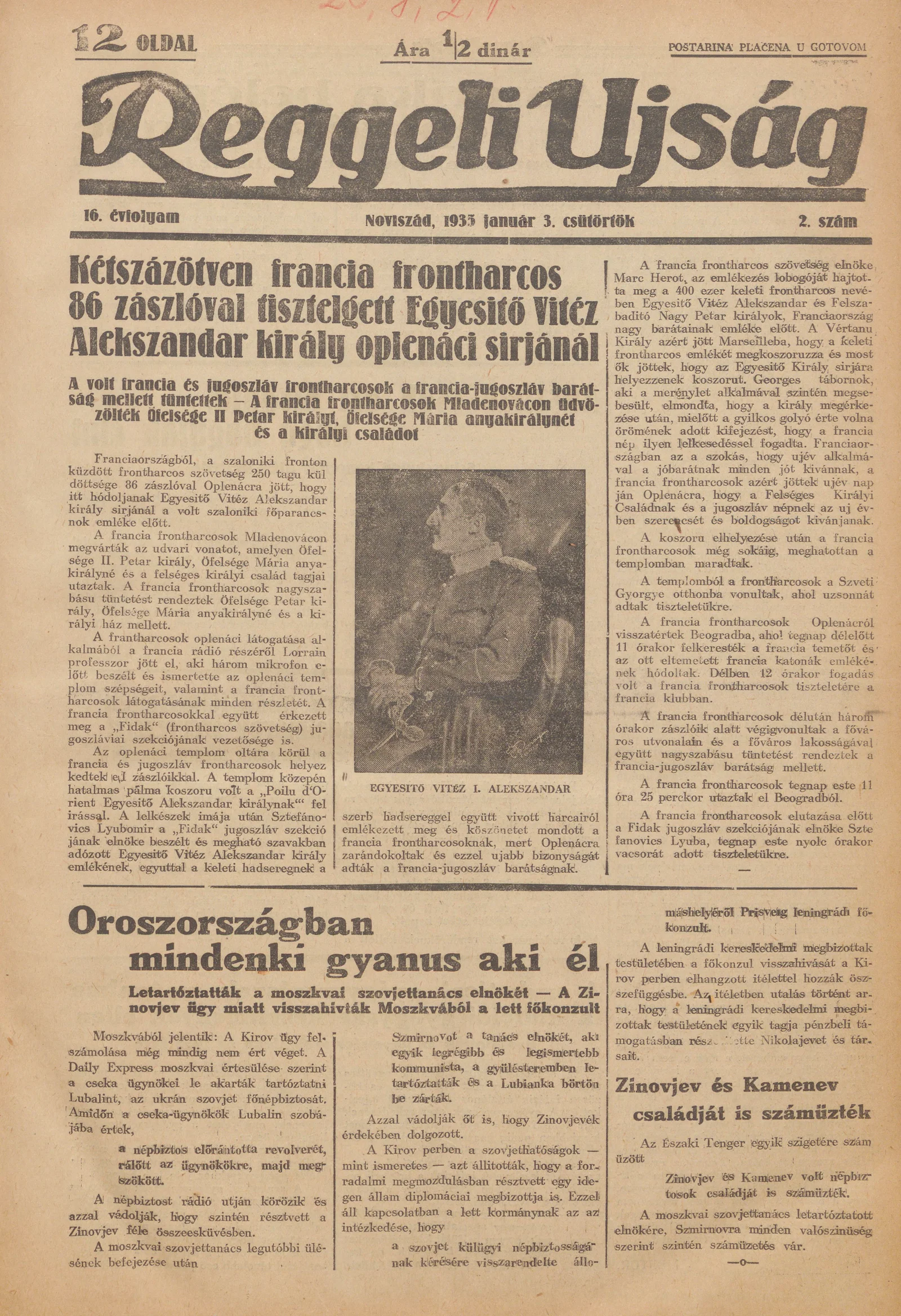 Reggeli Újság, 16. évf. 1935. január 3. 2. sz.