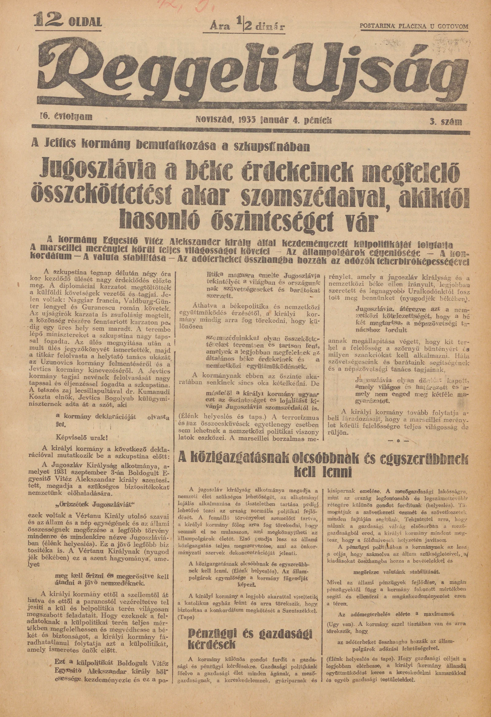 Reggeli Újság, 16. évf. 1935. január 4. 3. sz.