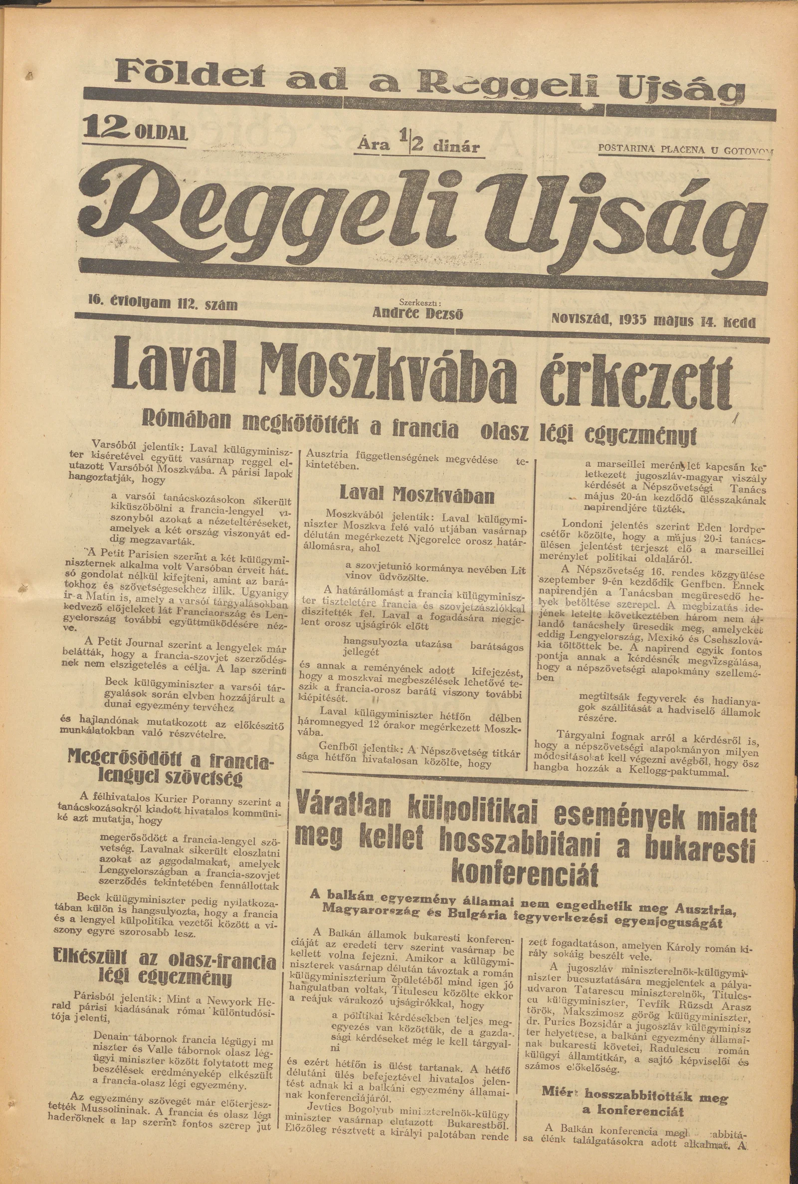 Reggeli Újság, 16. évf. 1935. május 14. 112. sz.